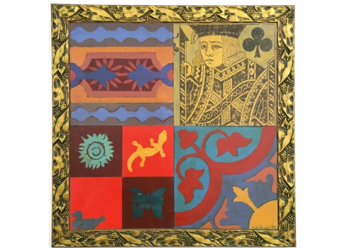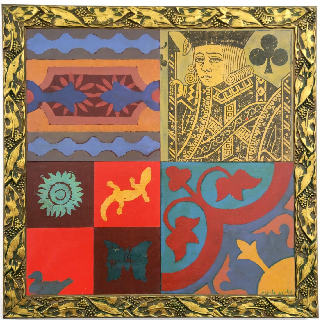 אליעז סלונים (נ. 1958) - 'מופשט 4', שמן וטכניקה מעורבת על לוחות עץ, חתום