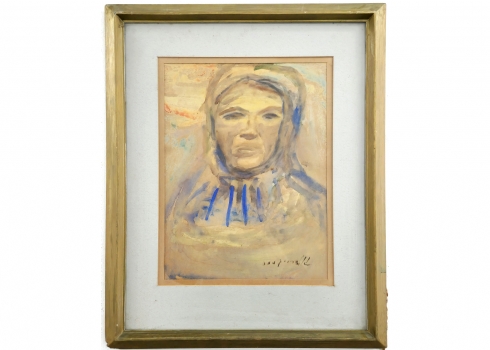 תמר גולדרייך - 'פורטרט אישה תימניה' - אקוורל על נייר, חתום
