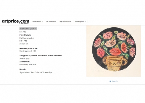 אווה צרבו Eva Cerbu Siegler (רומניה, 1924-2008) Anemones, הדפס חתום בעפרון 10/20