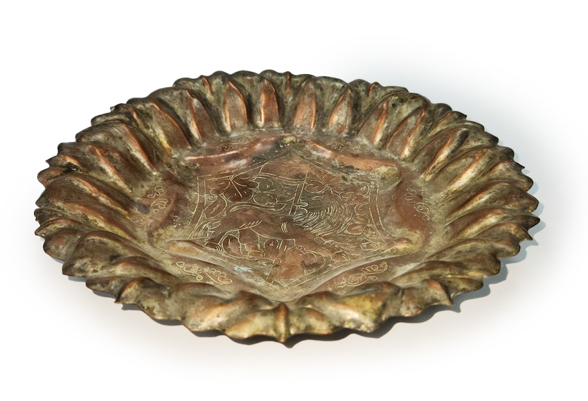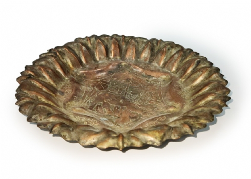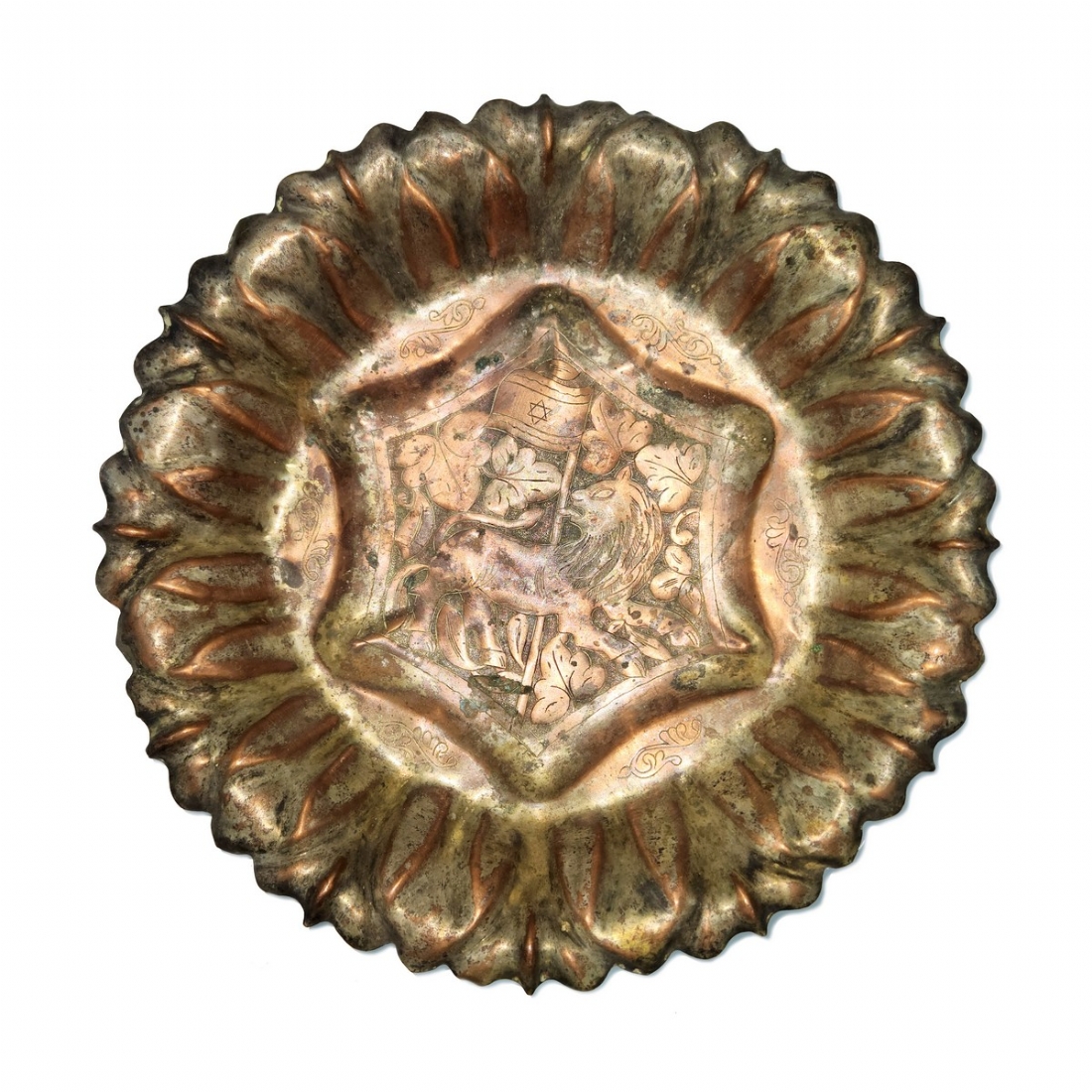 קערת נחושת מתקופת פלשתינה (א"י) מרוקעת וחרוטה בעבודת יד