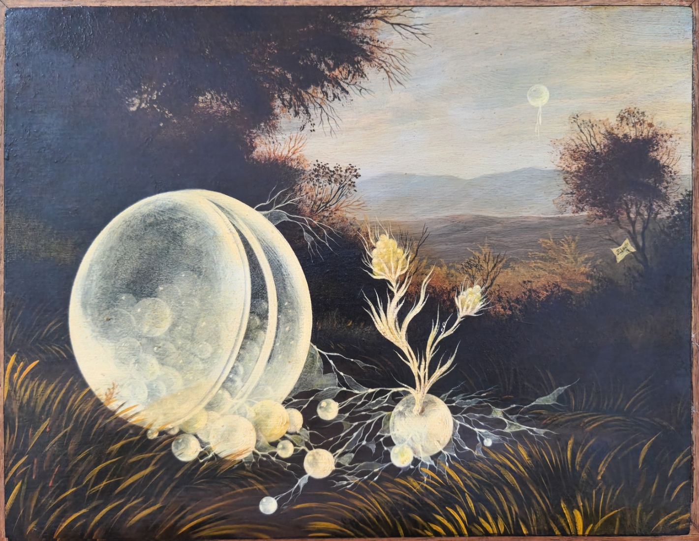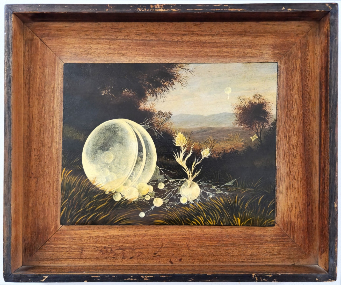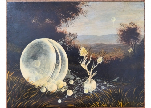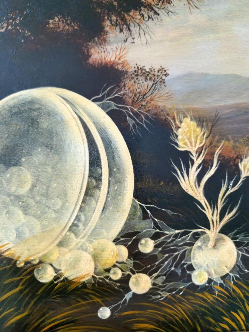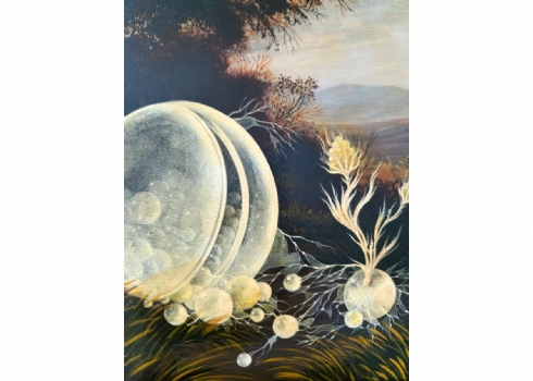 ברוך אלרון (1934-2006) - 'פנינים לבנות בנוף סתווי' - שמן על לוח, חתום