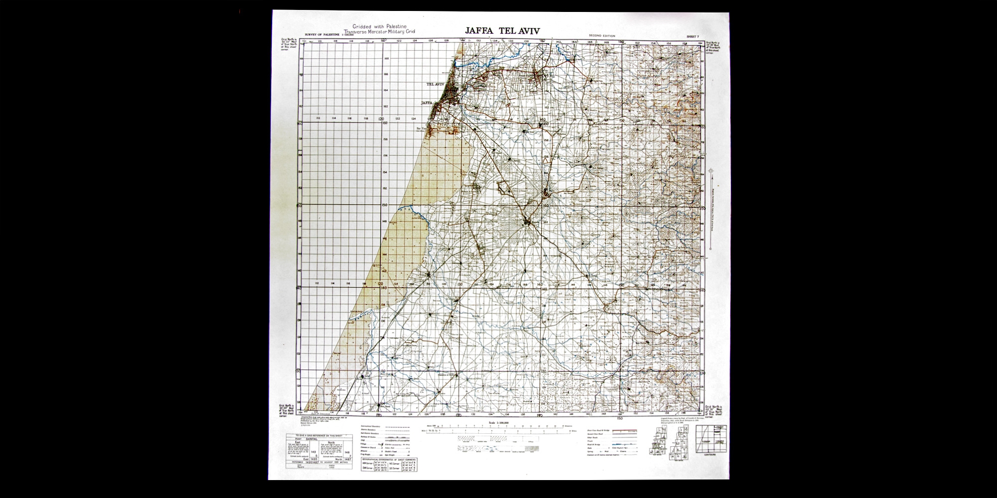 מפה ישנה של אזור מישור החוף מתקופת מלחה"ע השנייה (1941), בהוצאת משרד המלחמה הבריטי.