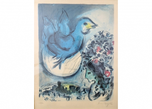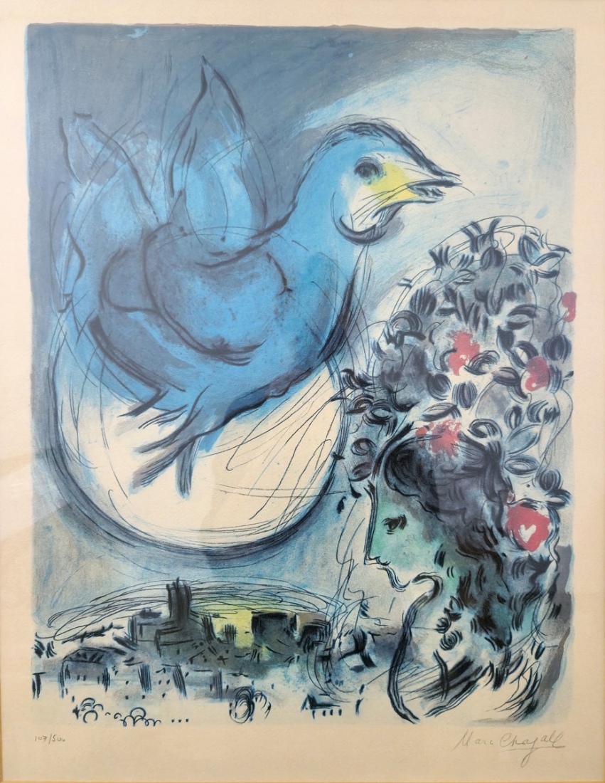 מארק שאגאל (Marc Chagall) - הציפור הכחולה, ליטוגרפיה