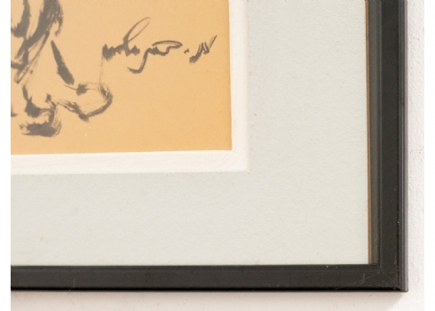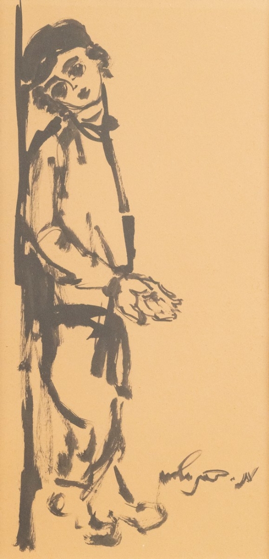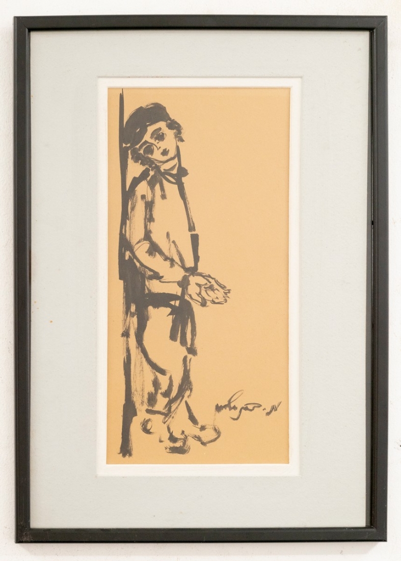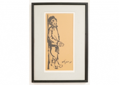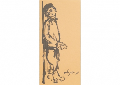 משה ברנשטיין (1920-2006) - 'נער יהודי מקבץ נדבות' - גואש שחור על נייר, חתום