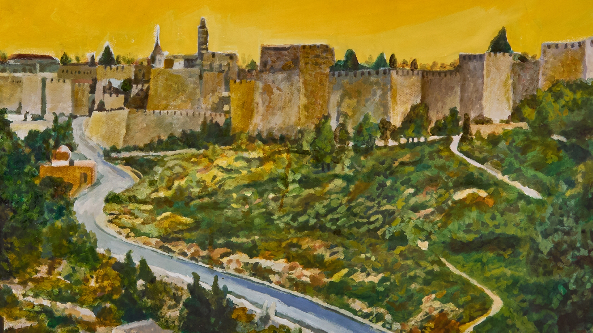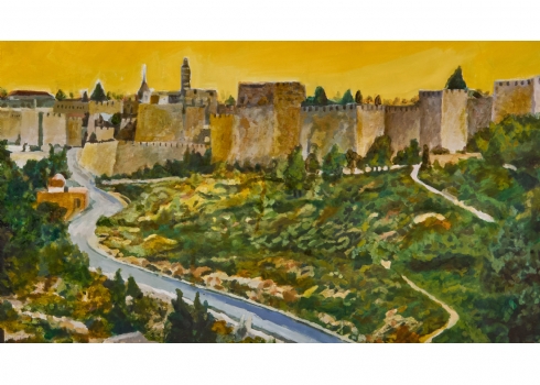 דוד הראל - 'ירושלים', שמן על בד, חתום