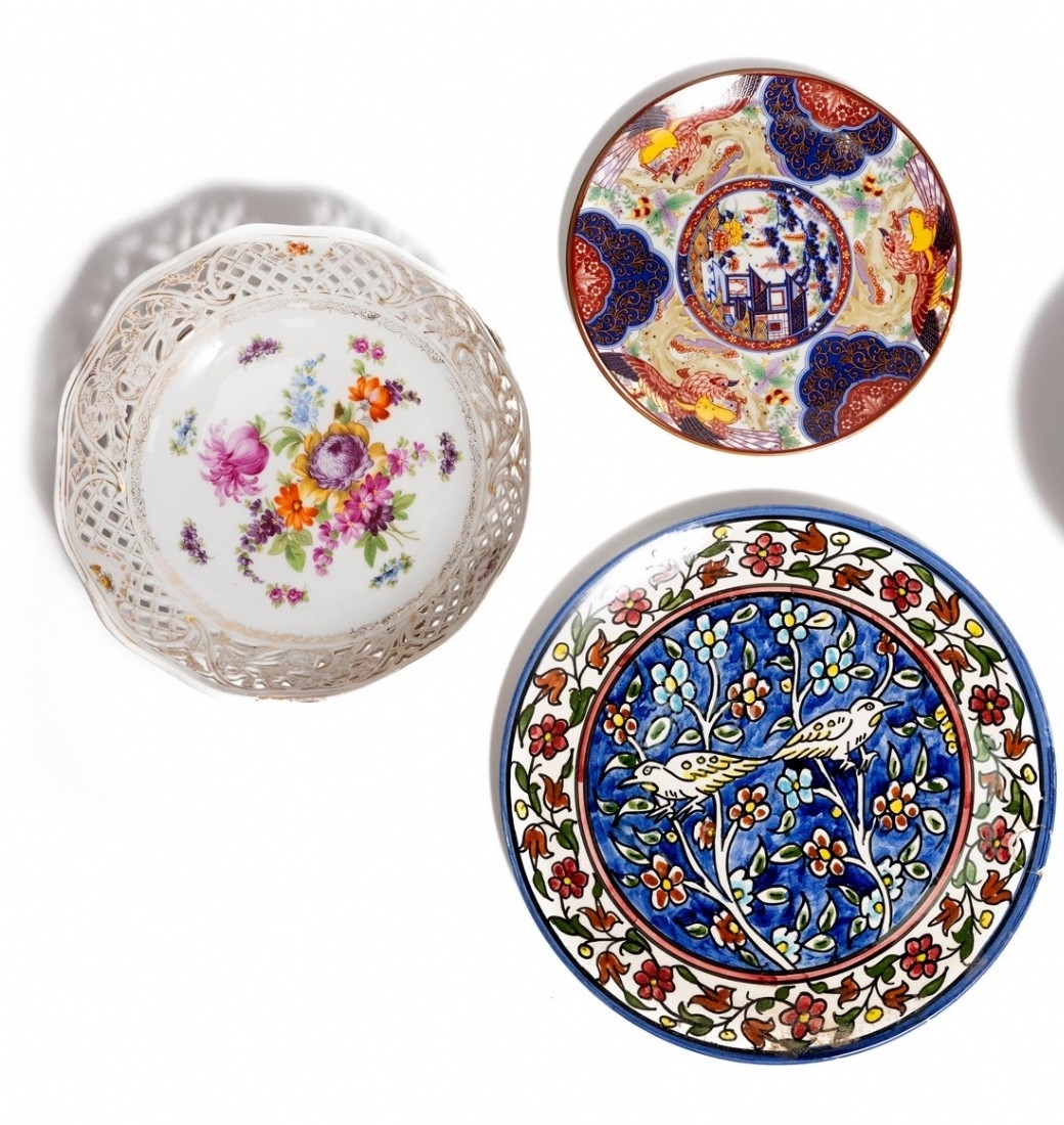 4 כלי פורצלן מעוטרים וחתומים