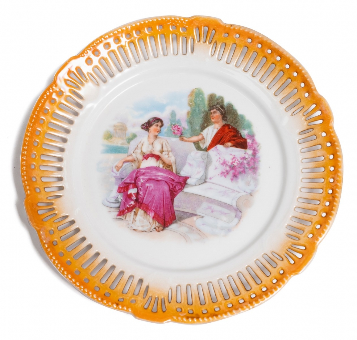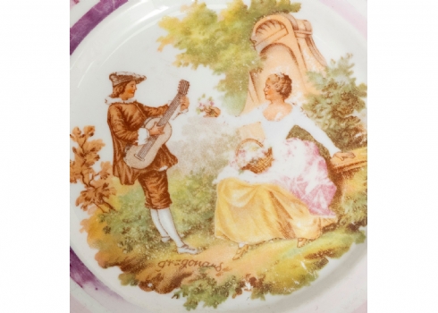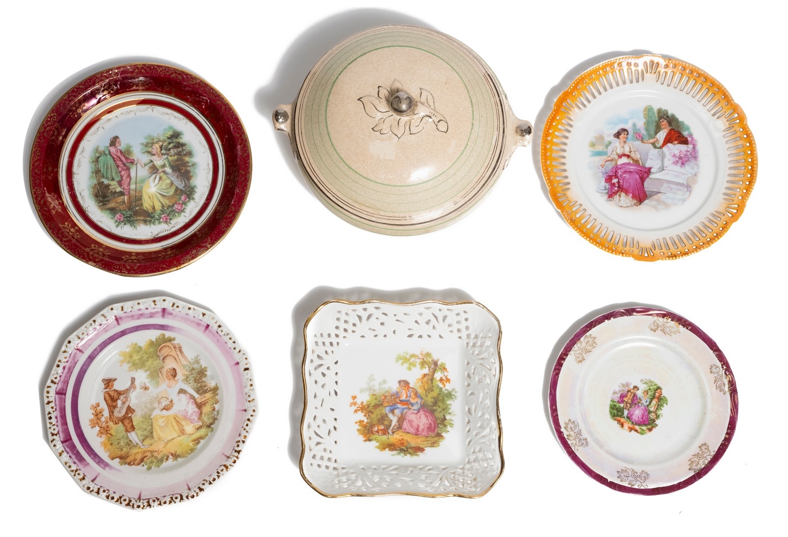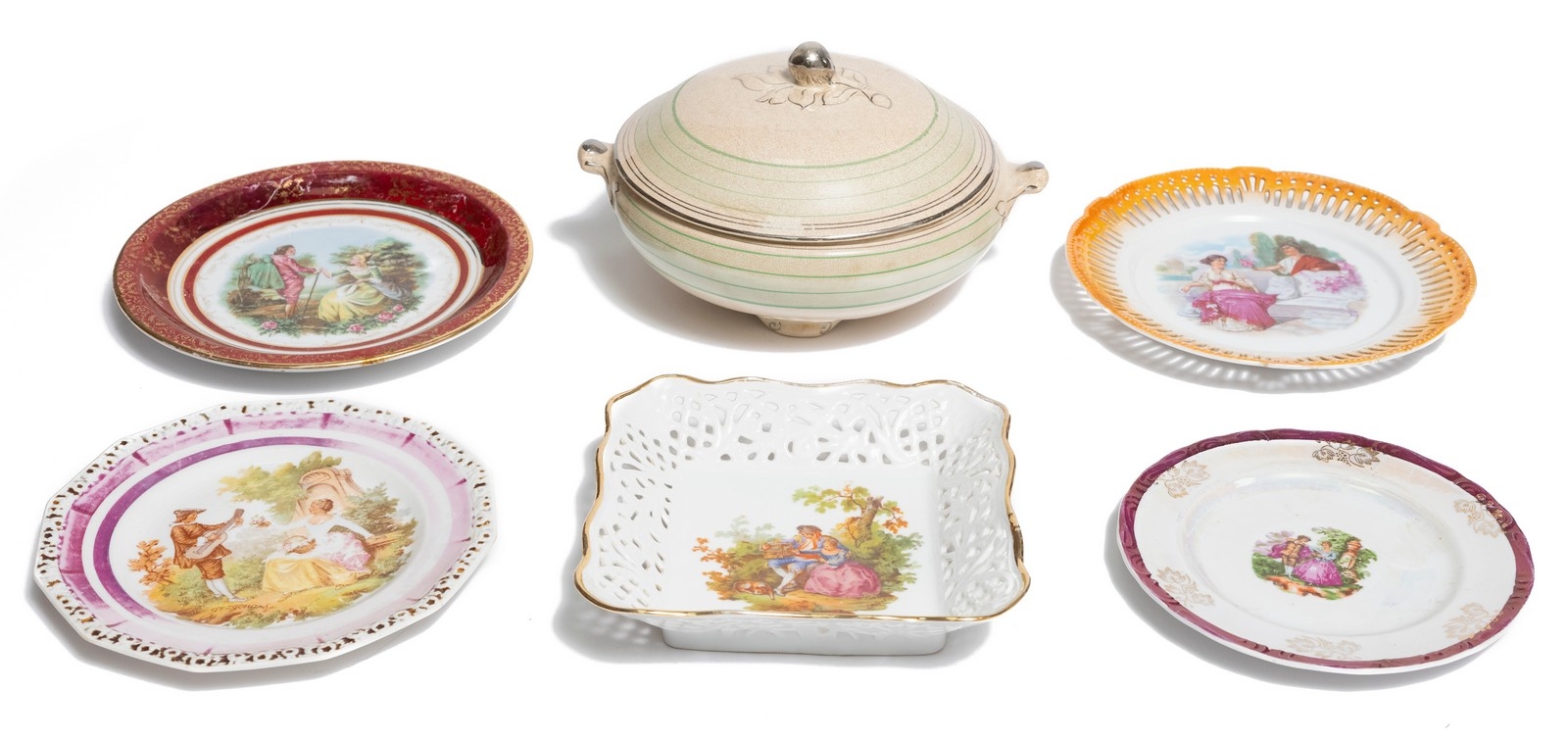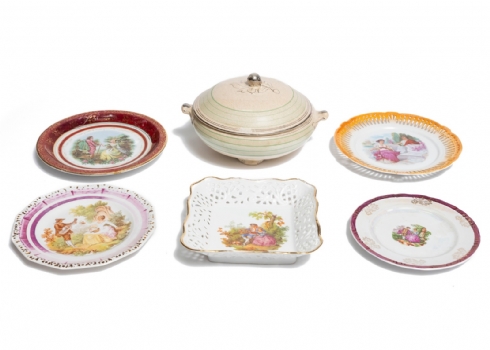 6 כלי פורצלן ישנים ועתיקים מעוטרים וחתומים