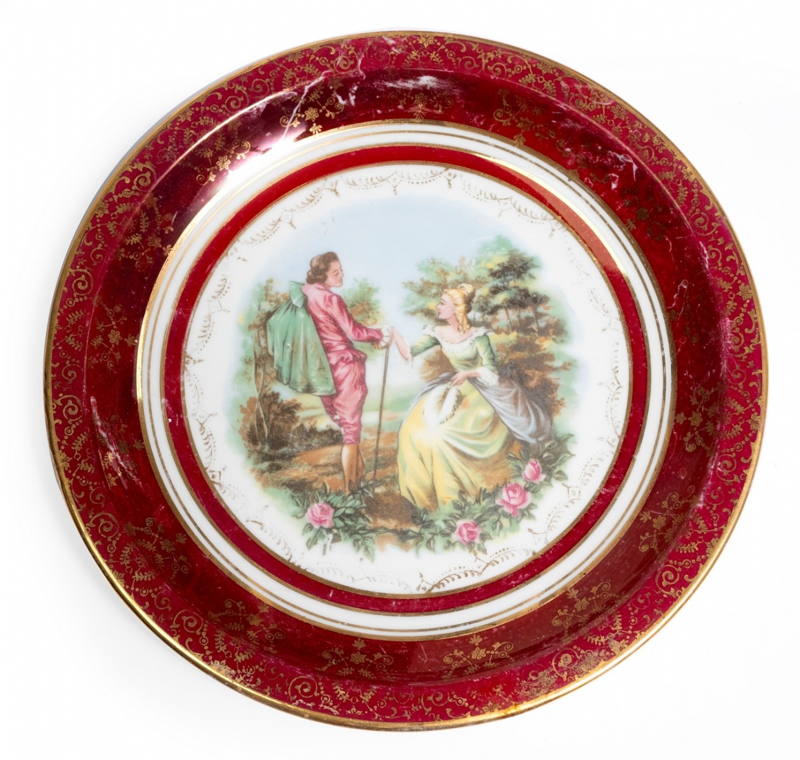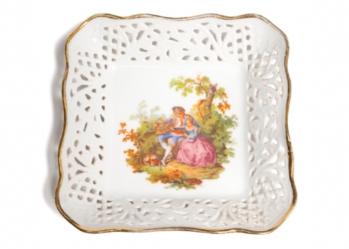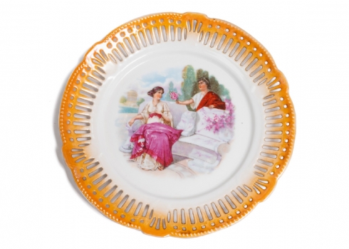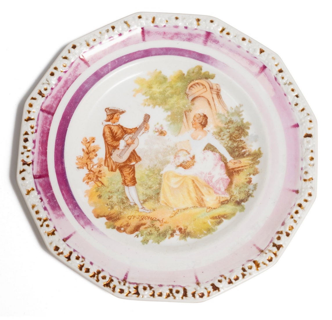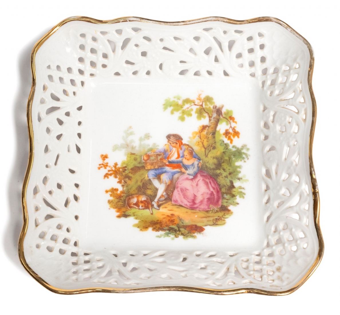 6 כלי פורצלן ישנים ועתיקים מעוטרים וחתומים