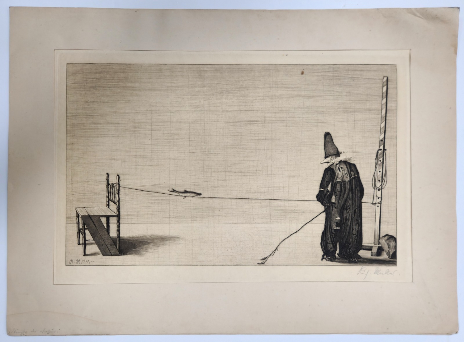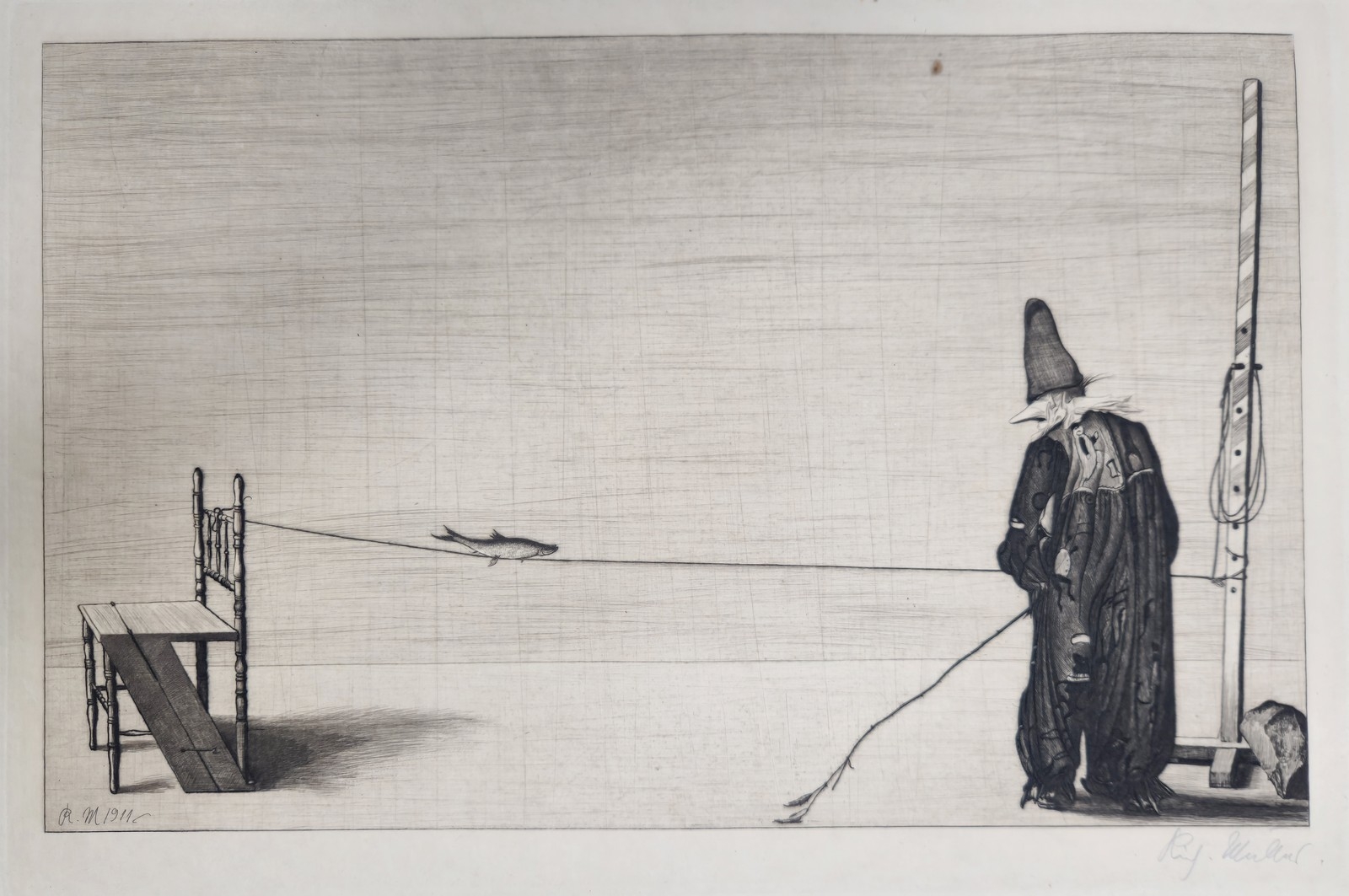 ריכרד מולר (Richard Müller, 1874–1954)- פלא האילוף (1911)- תצריב, חתום בעיפרון