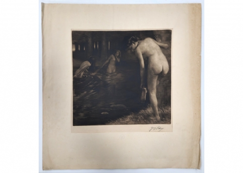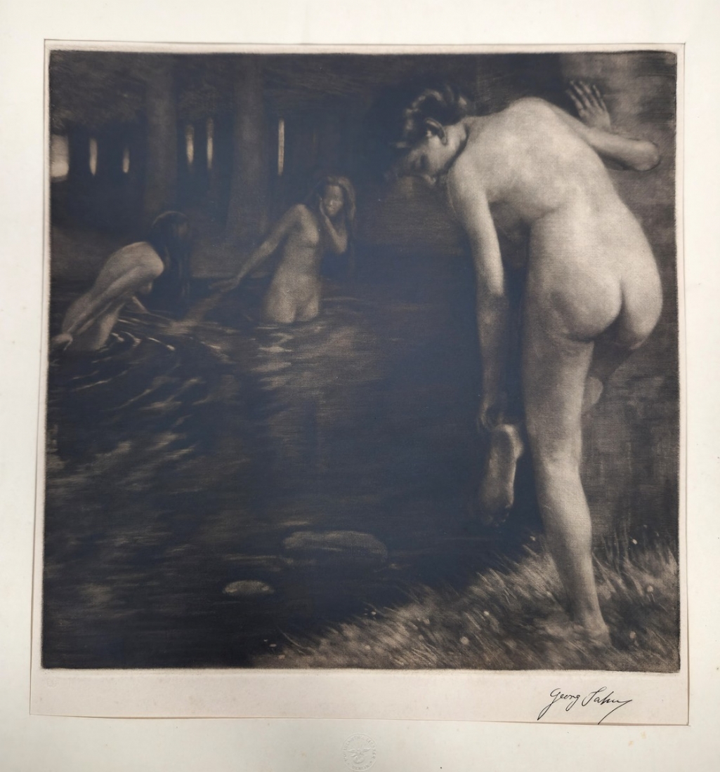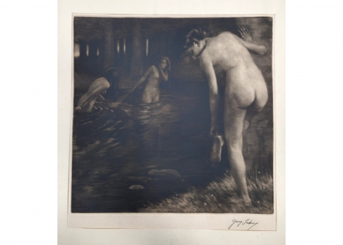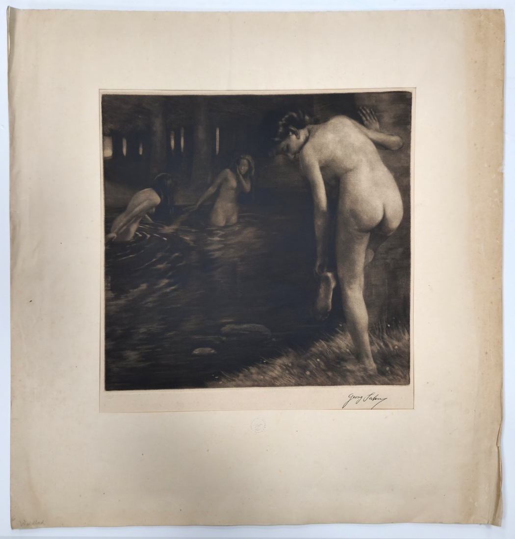 גאורג יאן, Georg Jahn (1869–1941, גרמניה)- שלוש נשים בעירום ליד אגם ביער, תצריב
