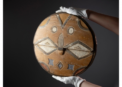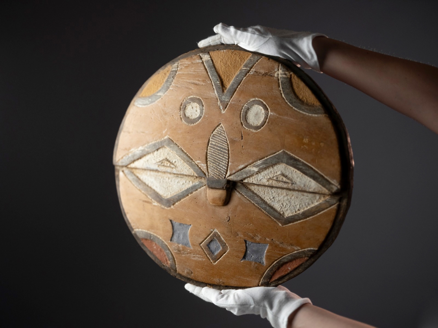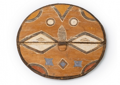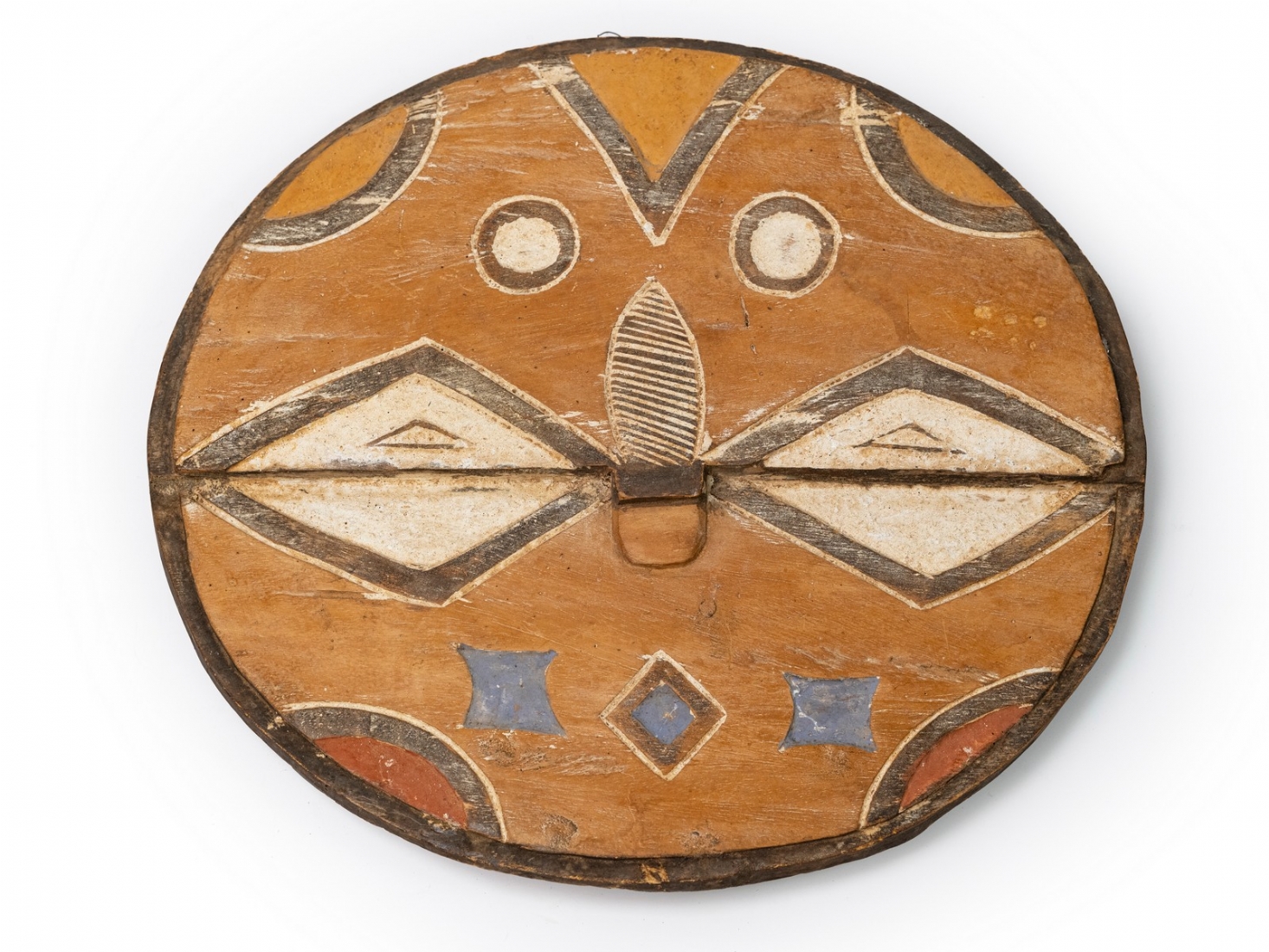 מסכה אפריקאית משבט הטקה (Teke) של קונגו עשויה עץ מצוייר