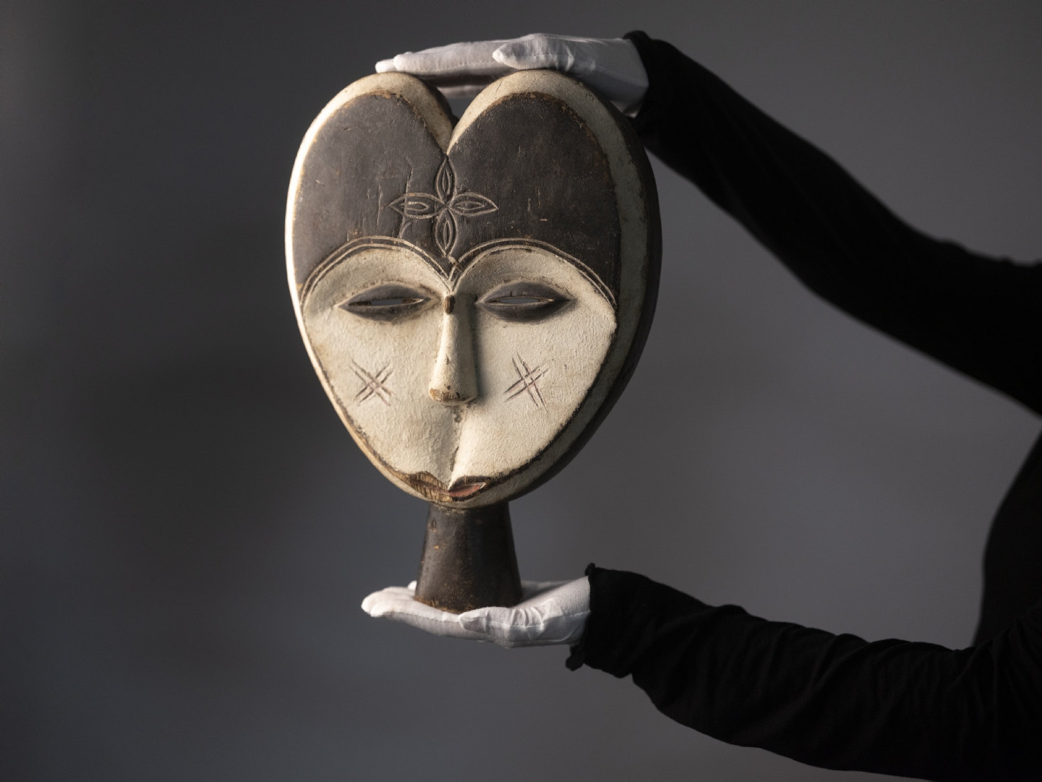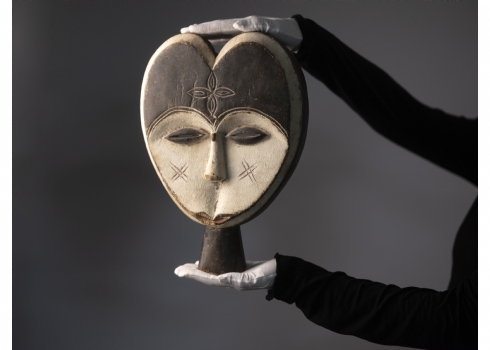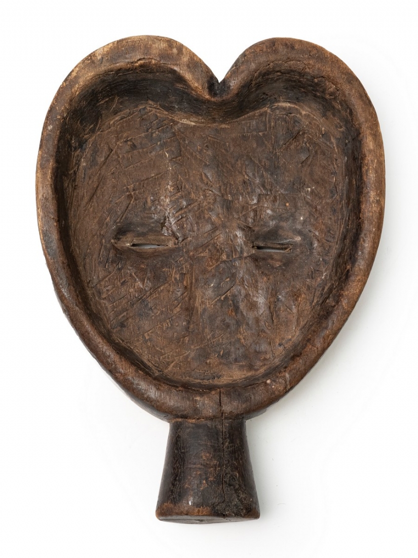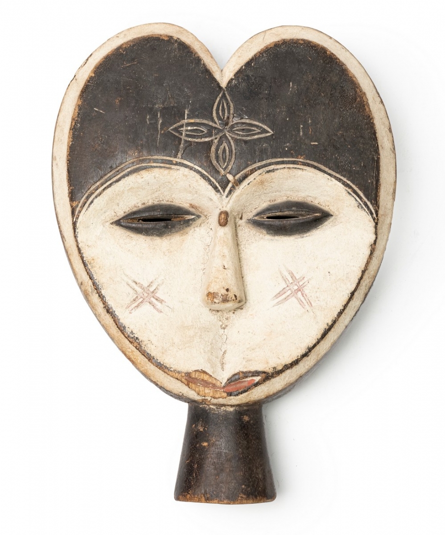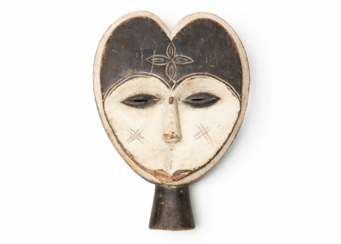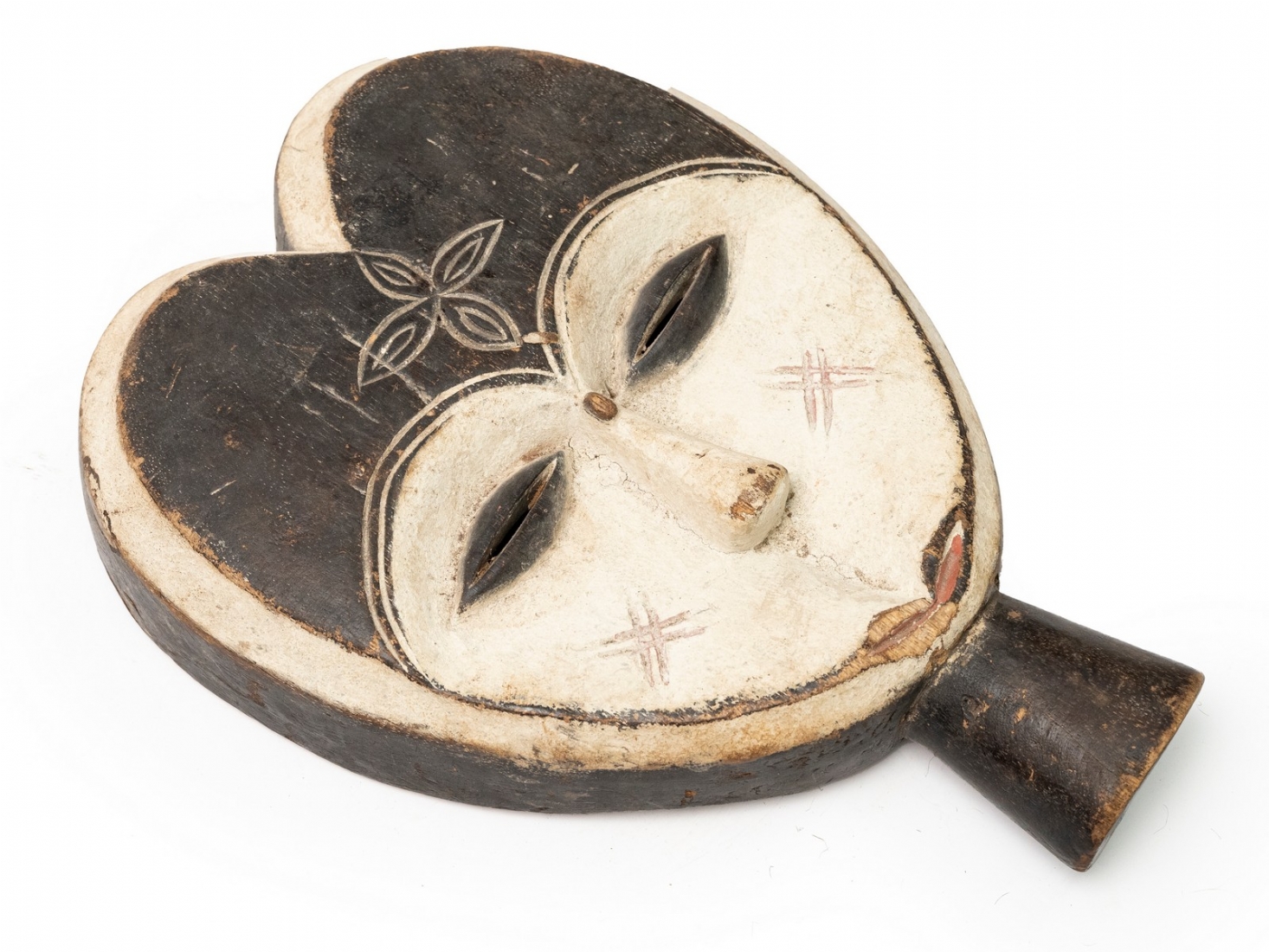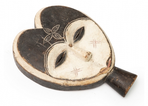 מסיכה אפריקאית של אנשי ה-Kwele, או Bakwele עשויה עץ מגולף ופיגמנט