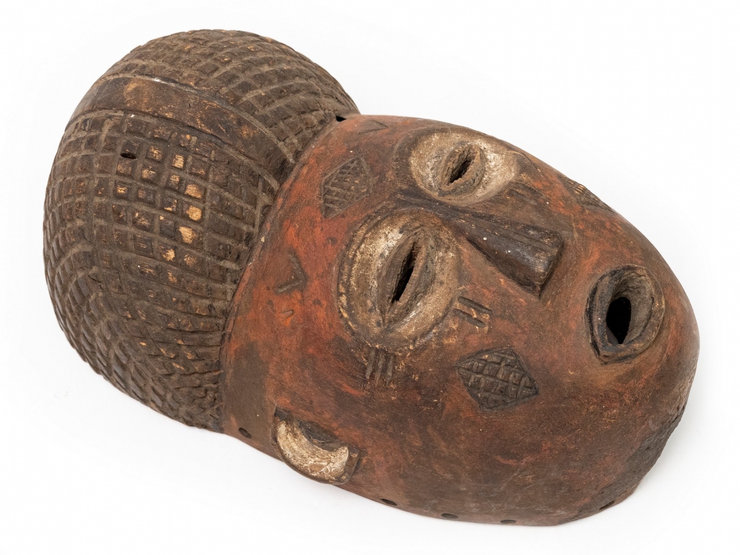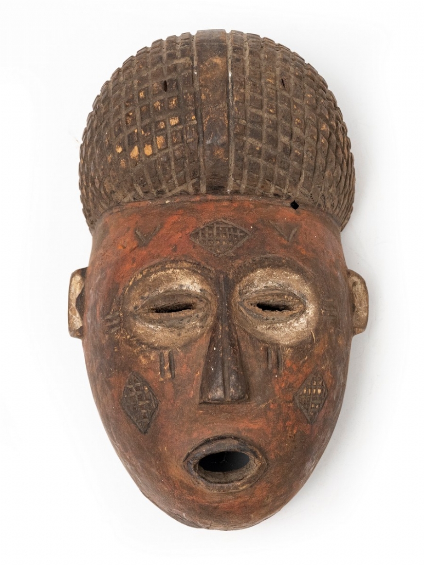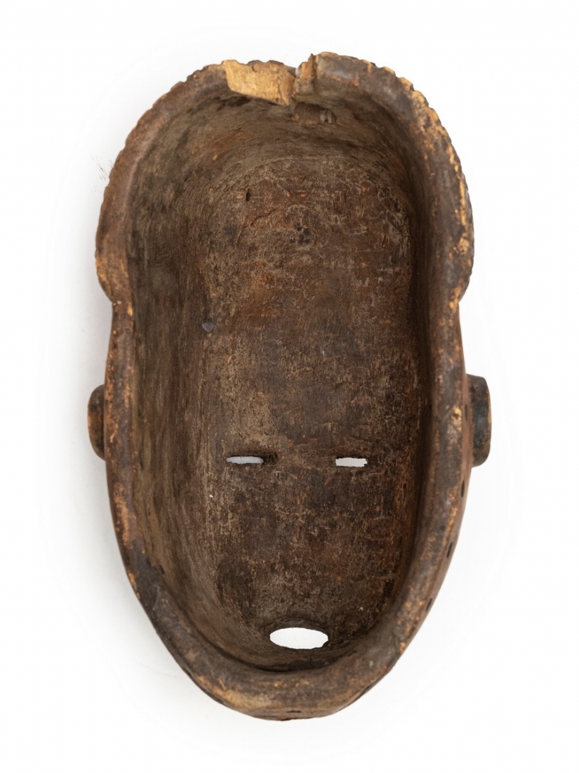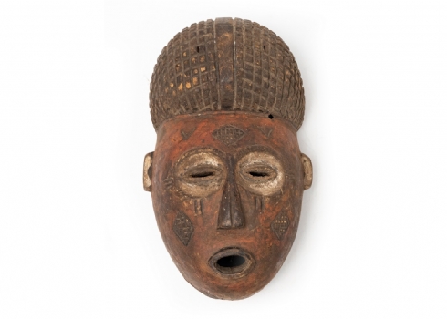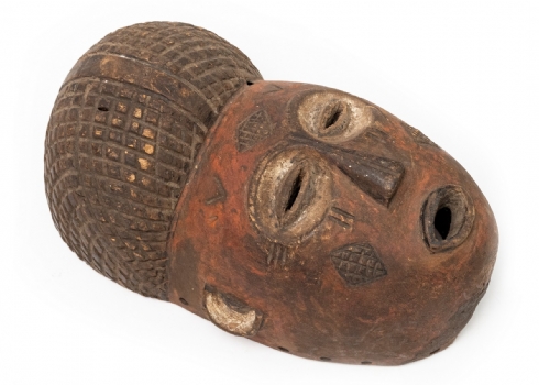 מסיכה אפריקאית עשויה עץ מגולף ופיגמנט