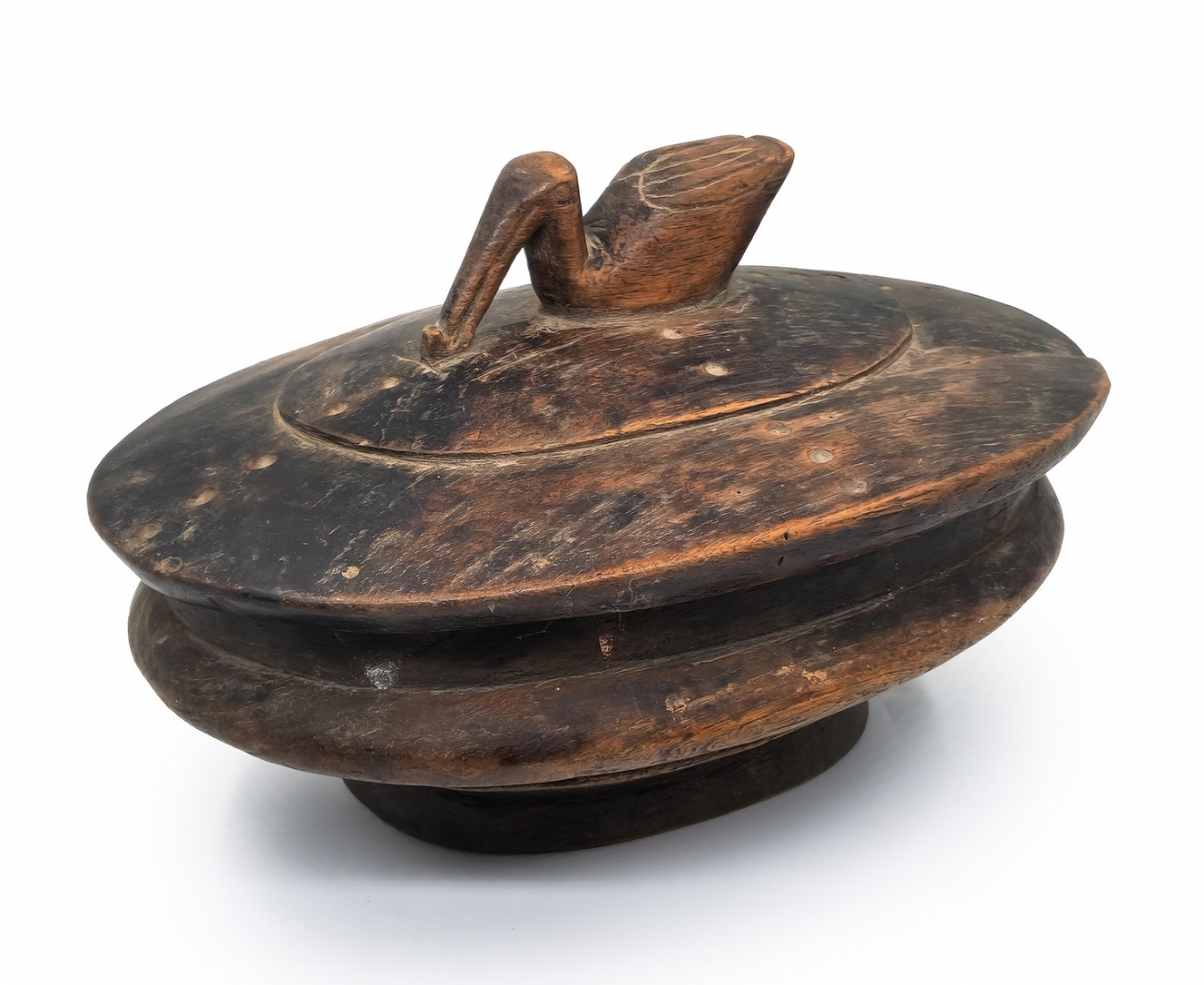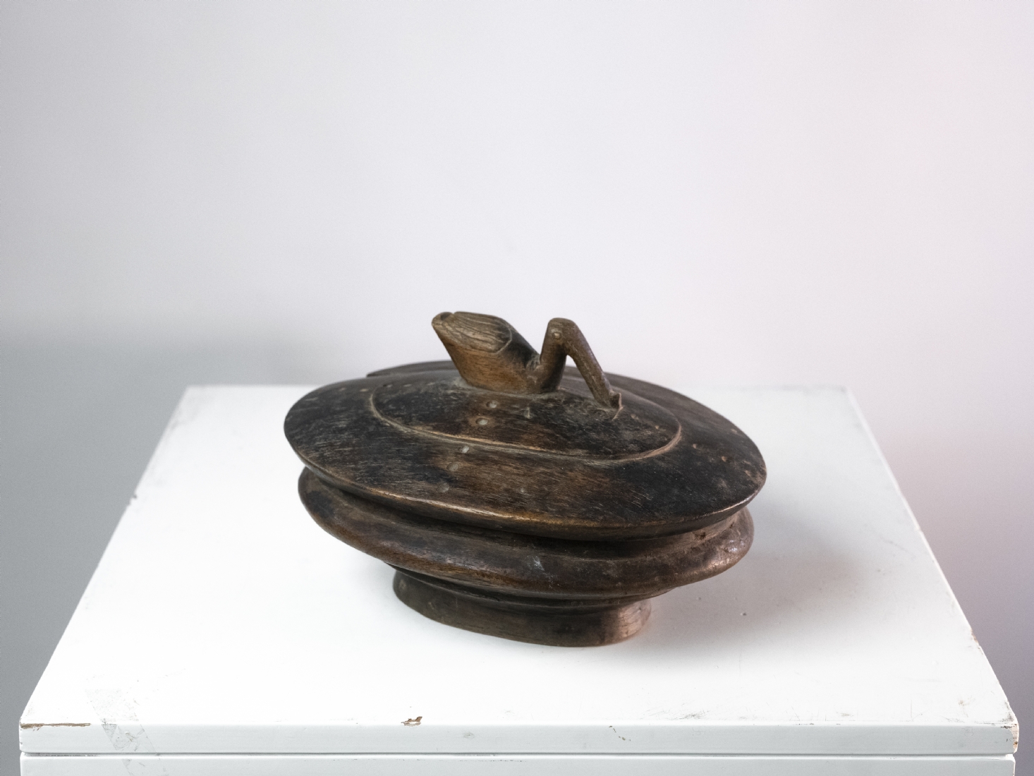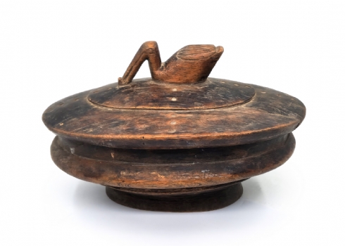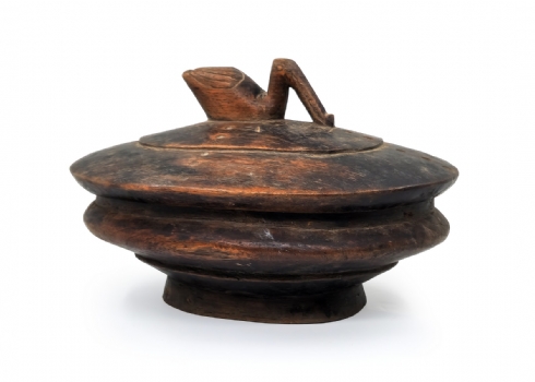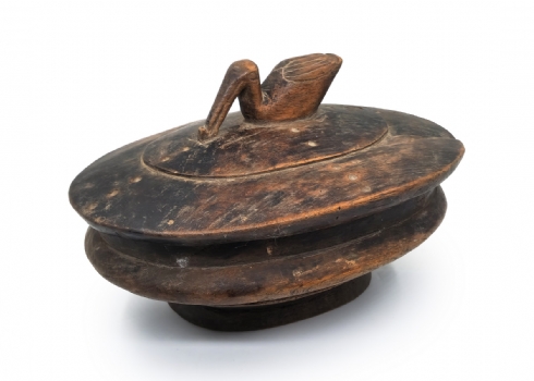 קופסא אפריקאית של אנשי הלוזי (Lozi people) עשויה עץ מעוטרת בדמות ברווז