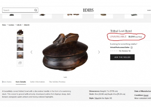 ** מצורף להמחשה צילום מסך של פריט דומה ומחירו בגלריה בחו"ל