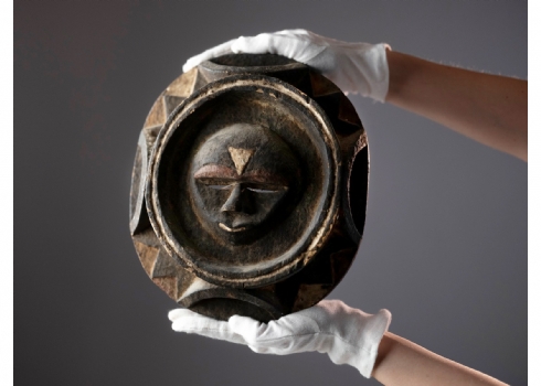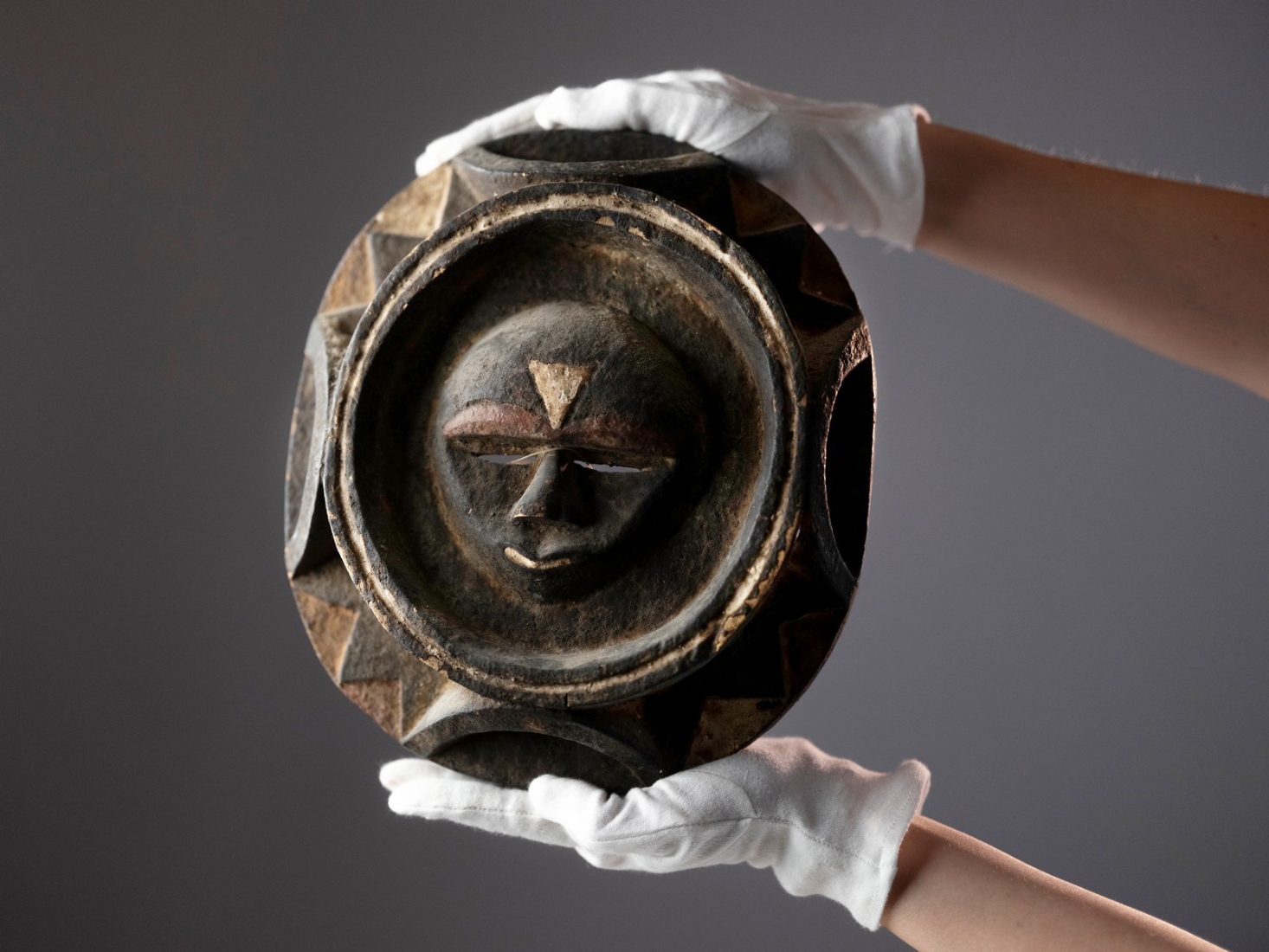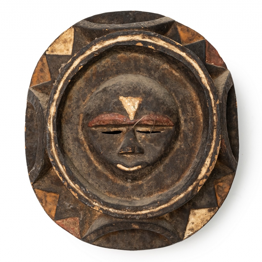 'מסיכת ירח' אפריקאית מאיזור ניגריה, עשויה עץ מגולף ופיגמנט