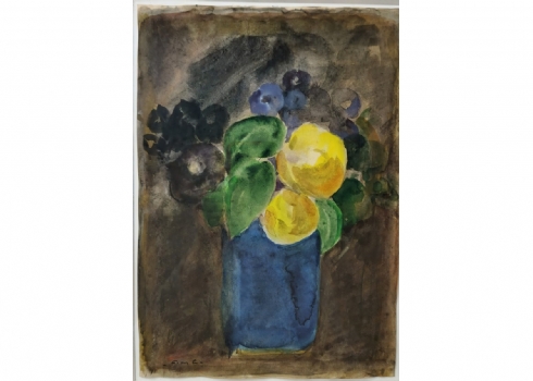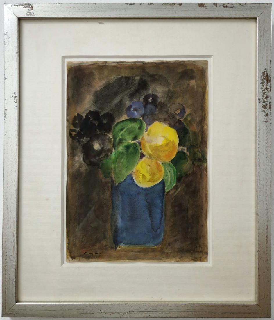 אפרים פימה רויטנברג (1914-2005) - 'פרחים בכד', אקוורל על נייר, חתום
