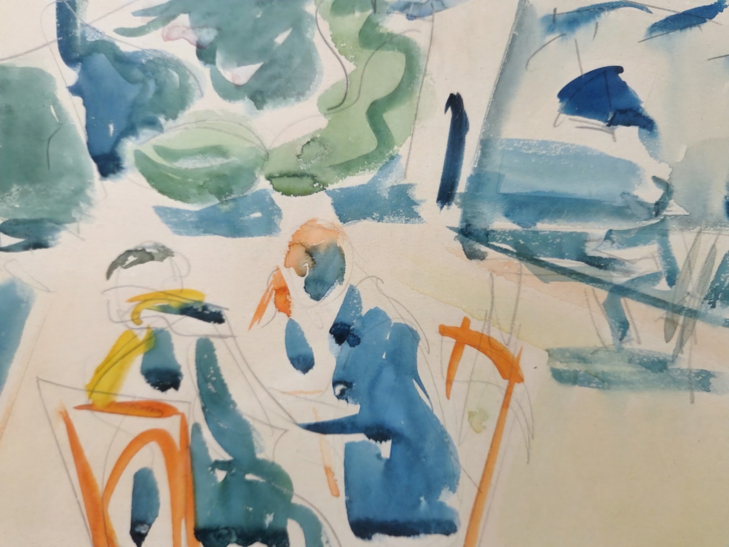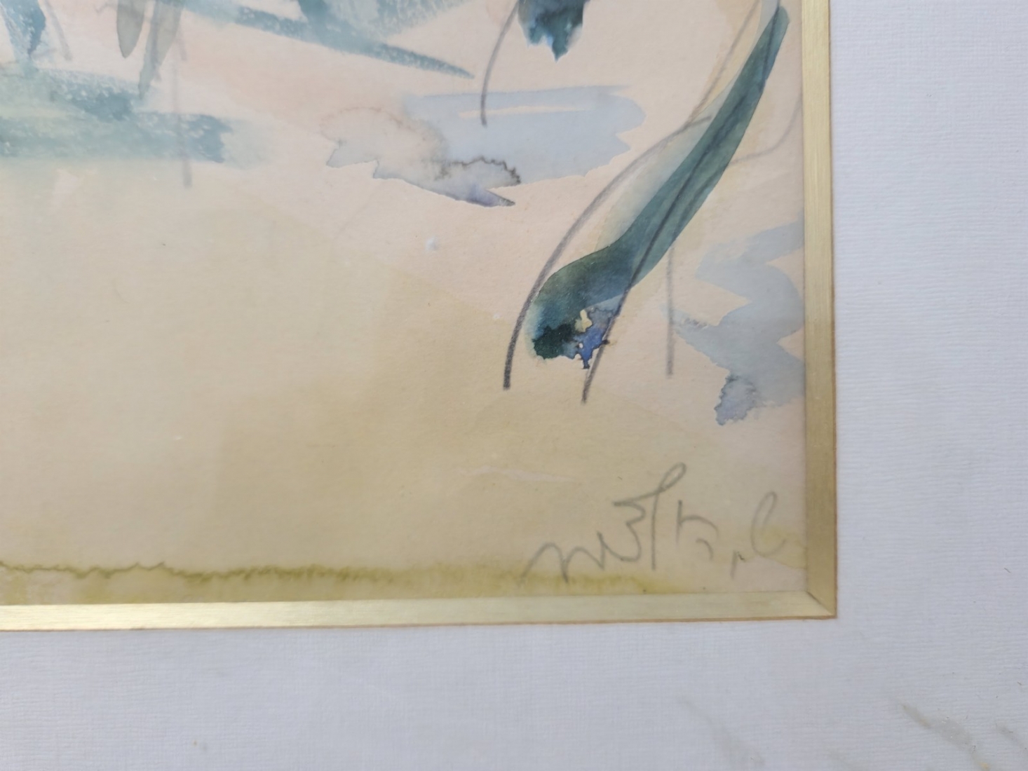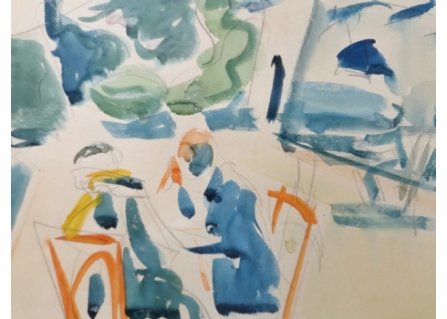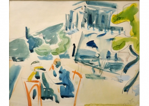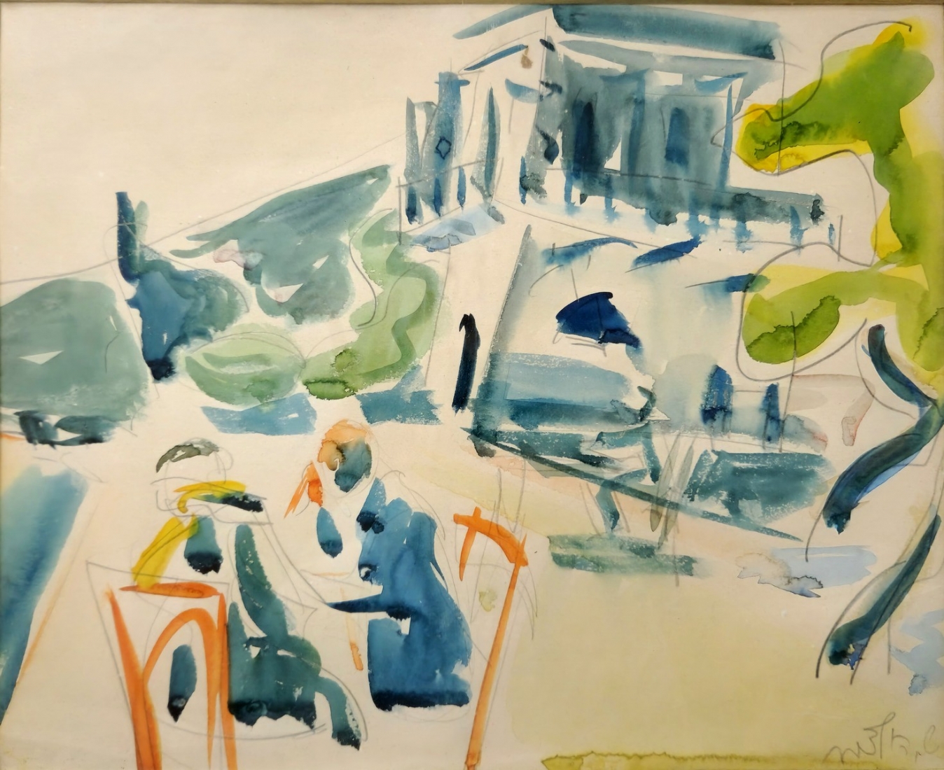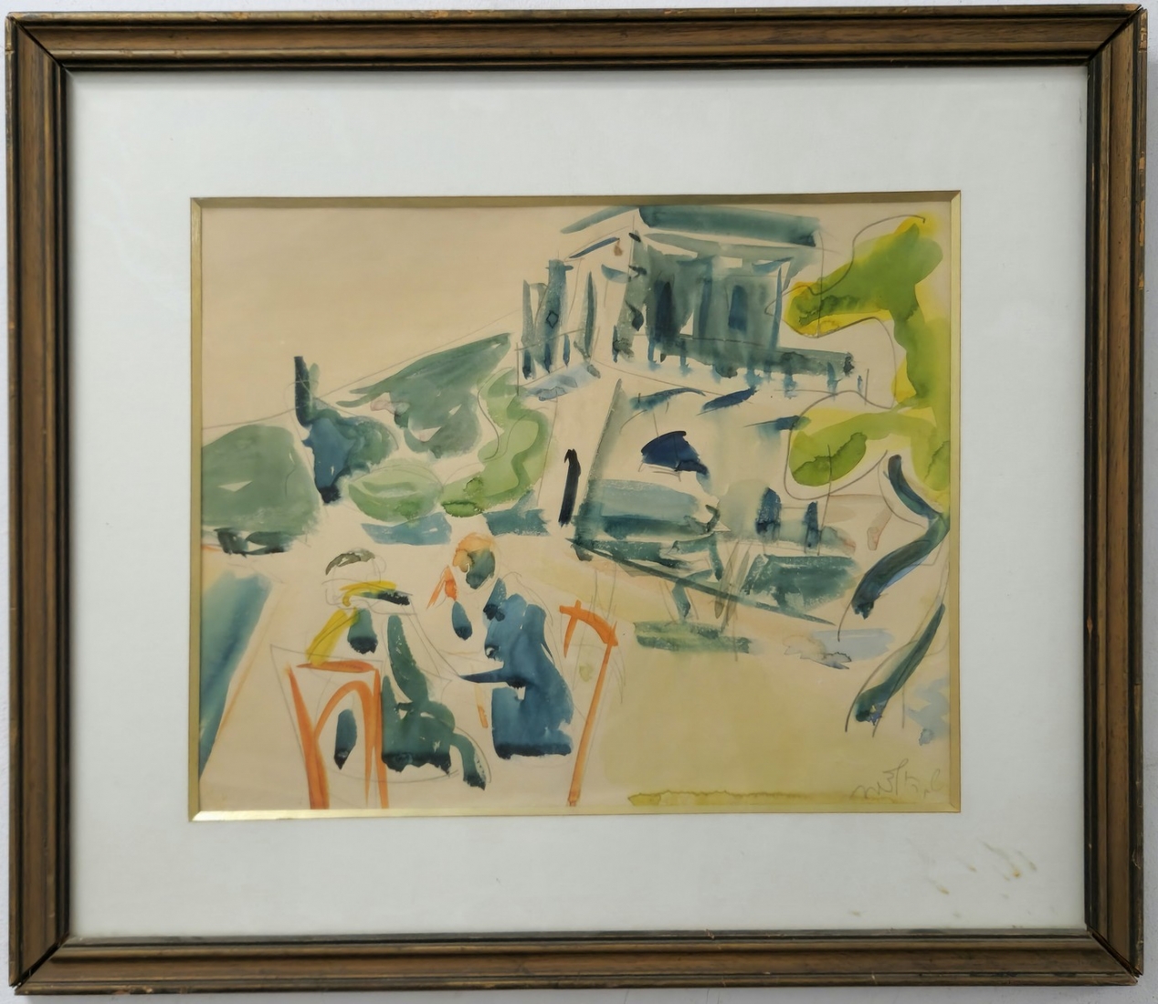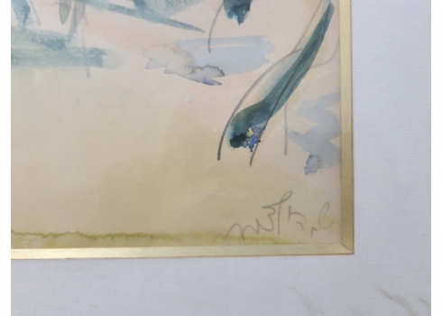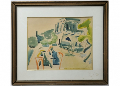 שמשון הולצמן (1907-1986) - רישום עיפרון ואקוורל על נייר, חתום