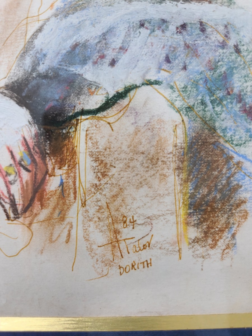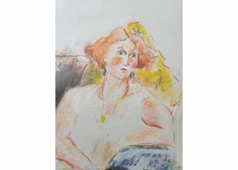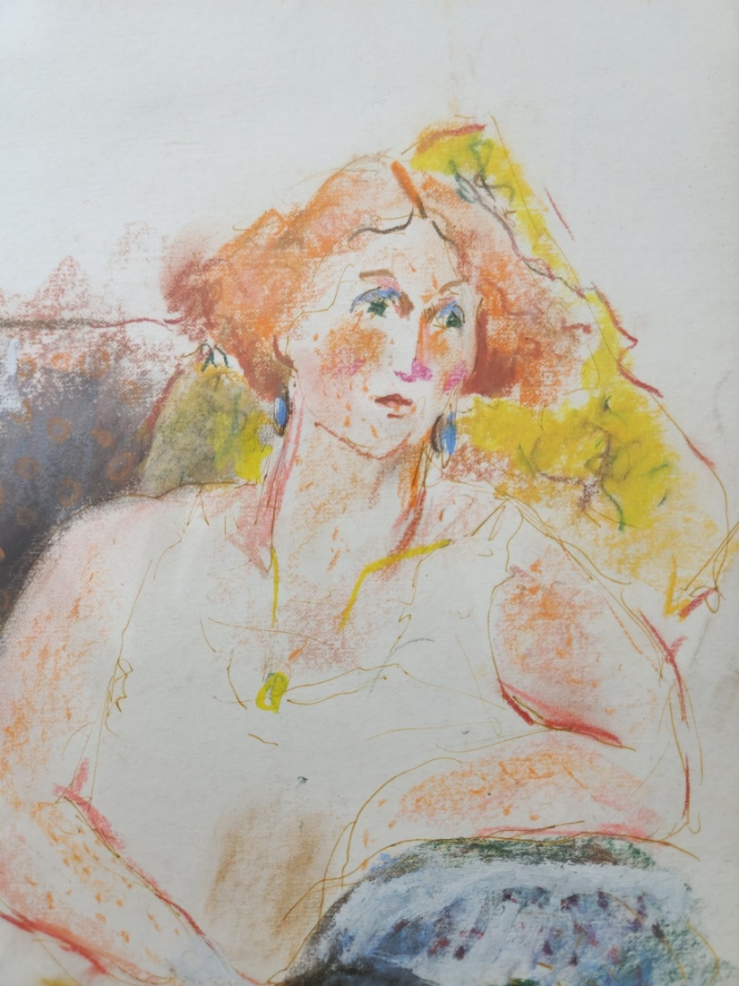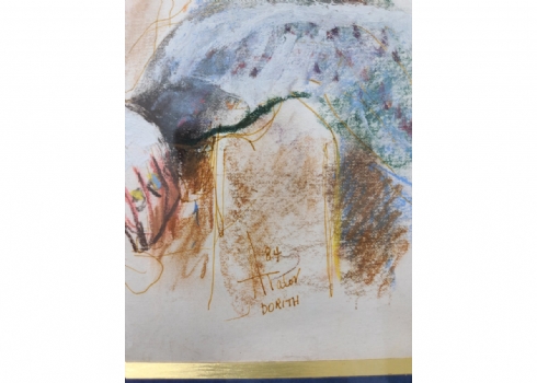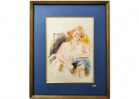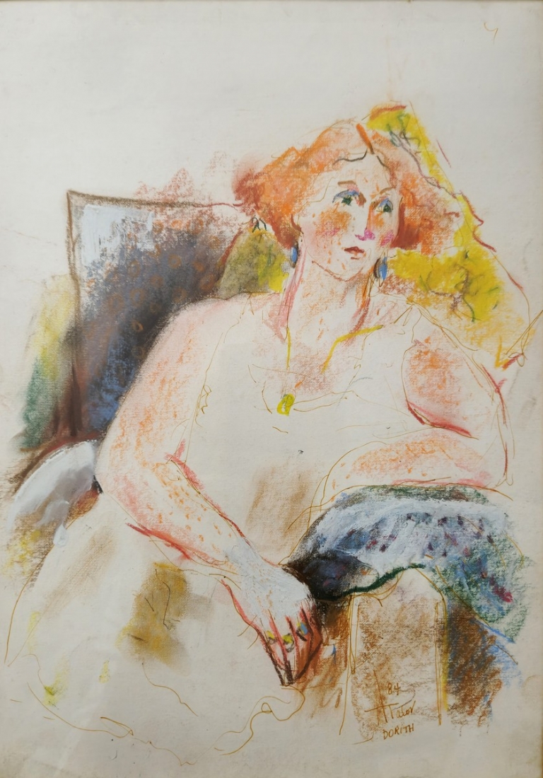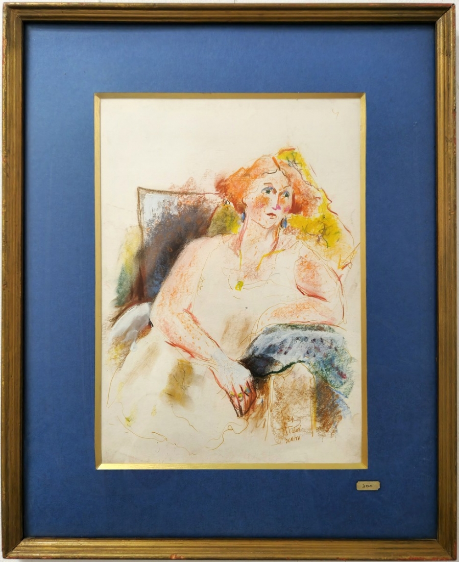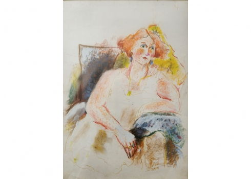 אטאלוב דורית (Atalov Dorith) - אישה על כסא, רישום בגירי פנדה על נייר, חתום