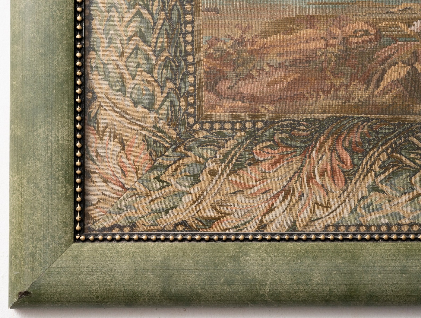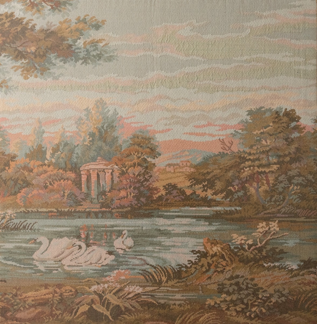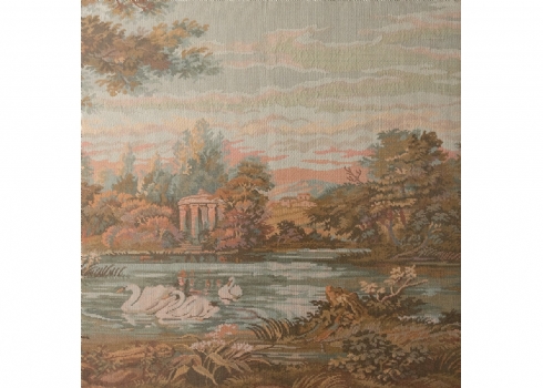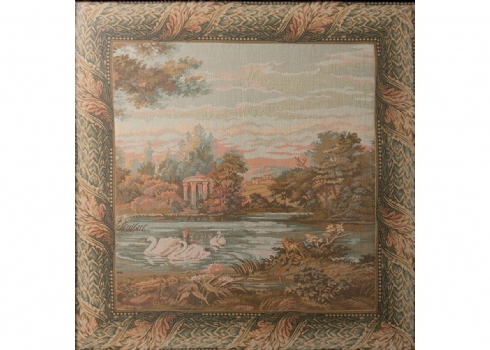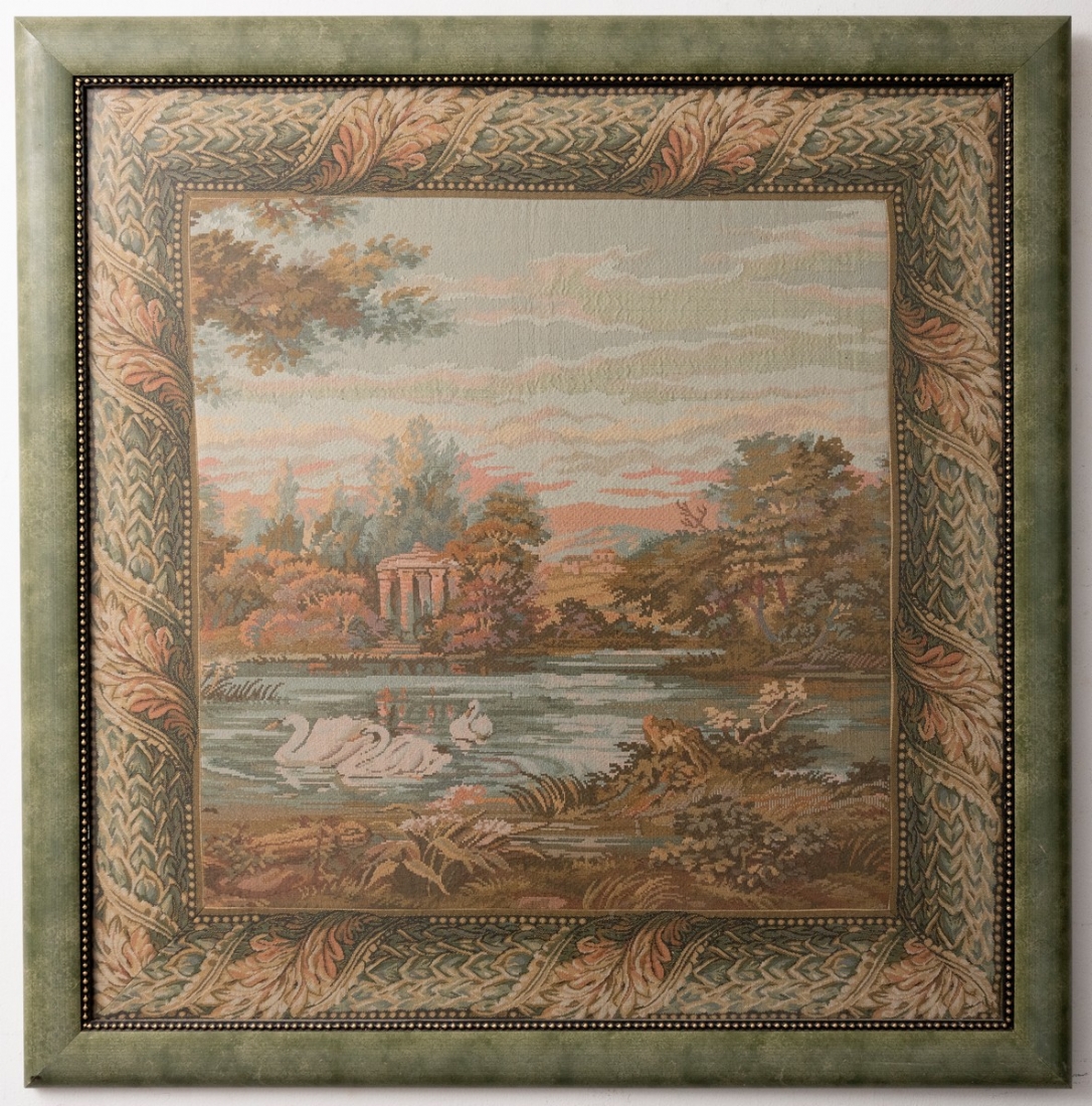 גובלן ממוסגר בעל דגם ברבורים , עשוי בעבודת מכונה, נתון במסגרת נאה