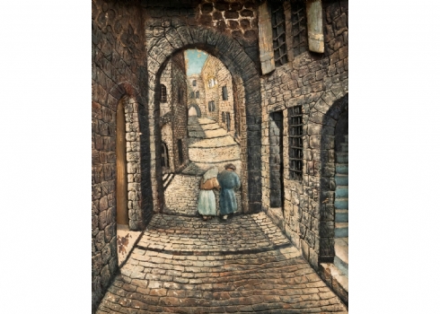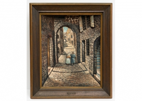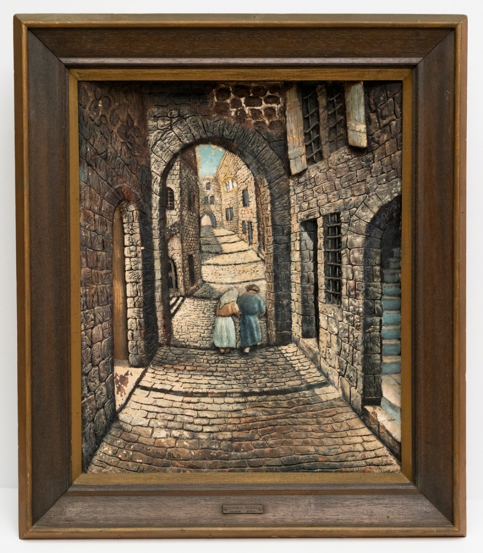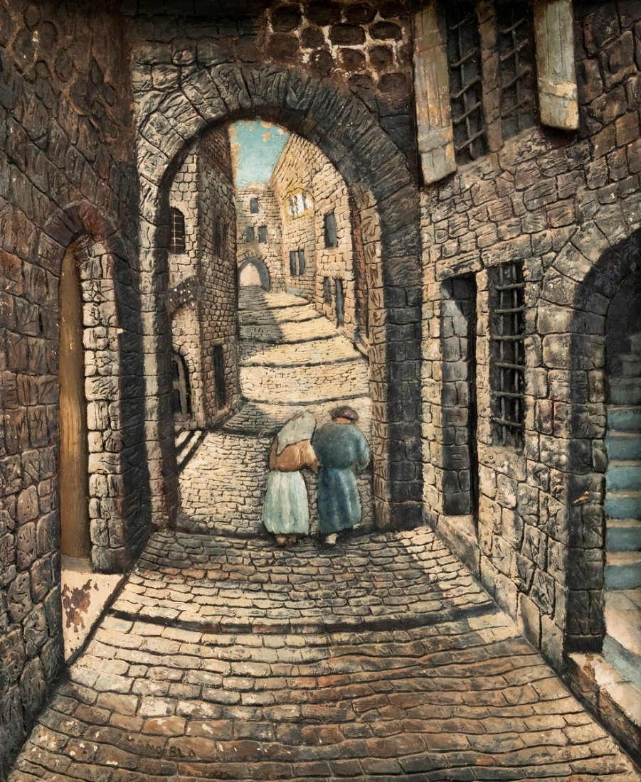 MANOBLA - זוג בסימטה ירושלמית, תבליט קיר כבד ומסיבי, עשוי חומר יצוק