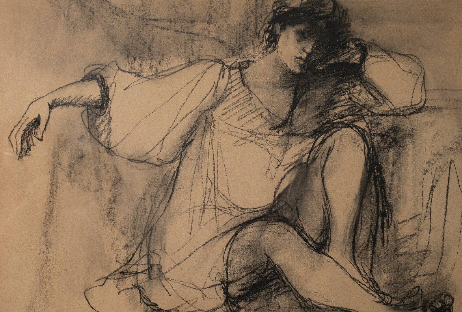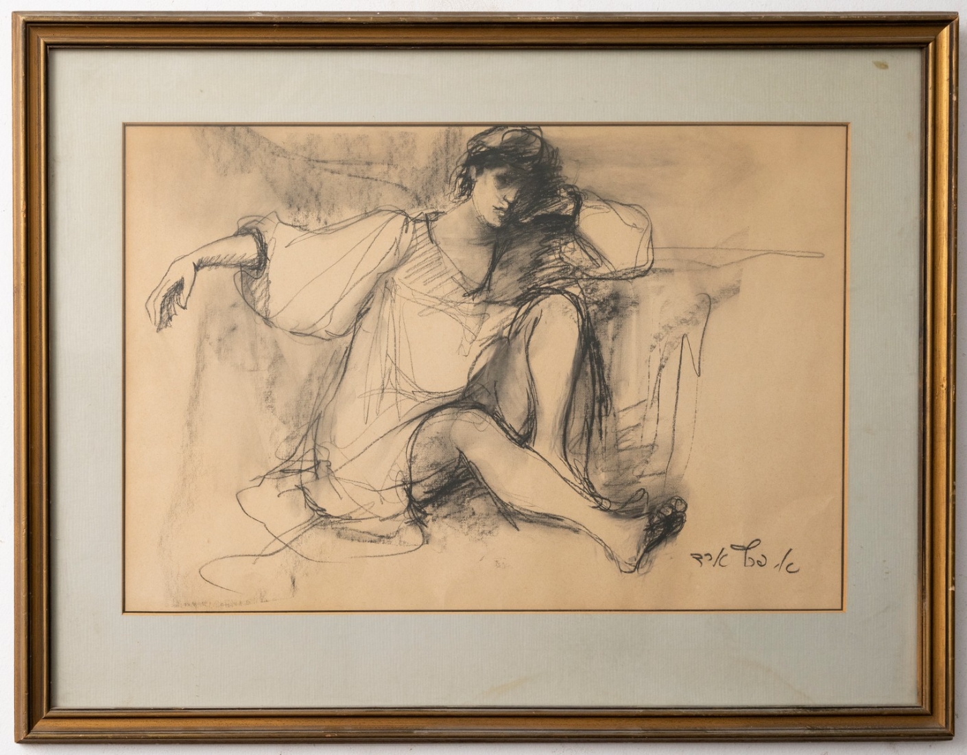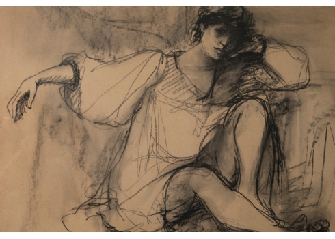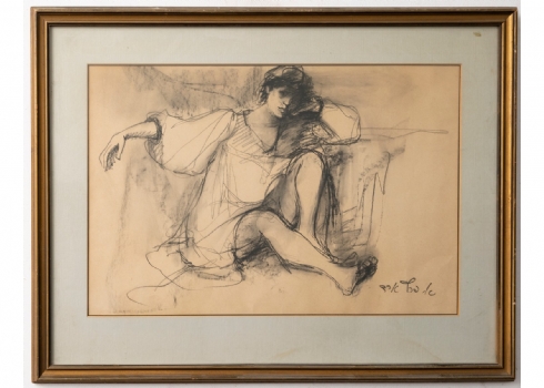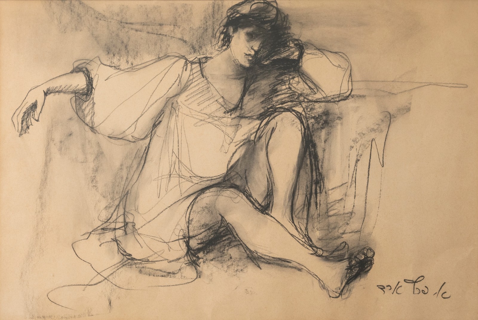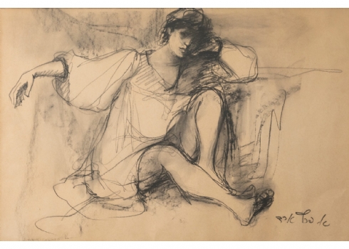 אסתר פרץ- ארד, (1921-2005), רישום בגירי פחם על נייר, חתום