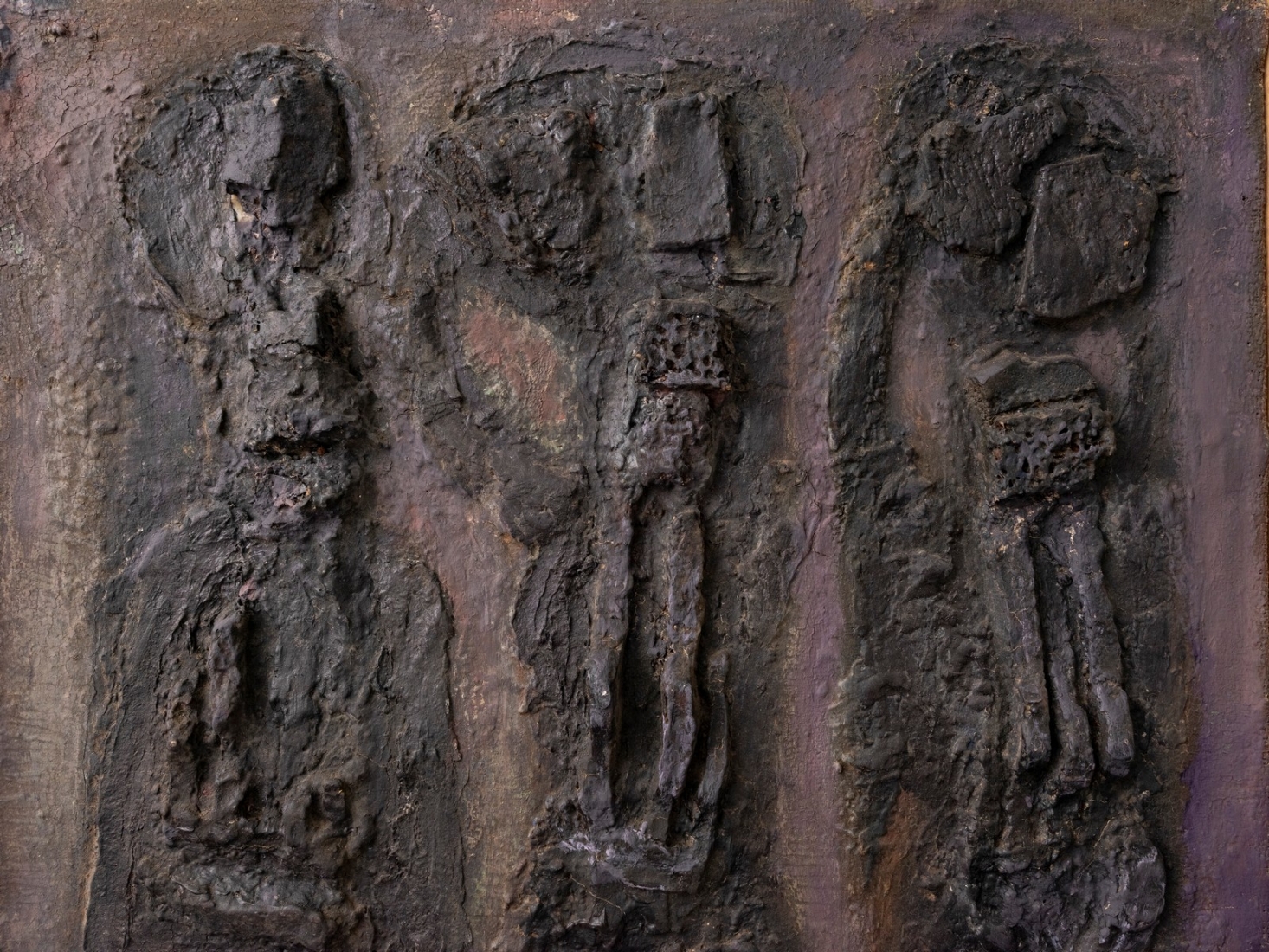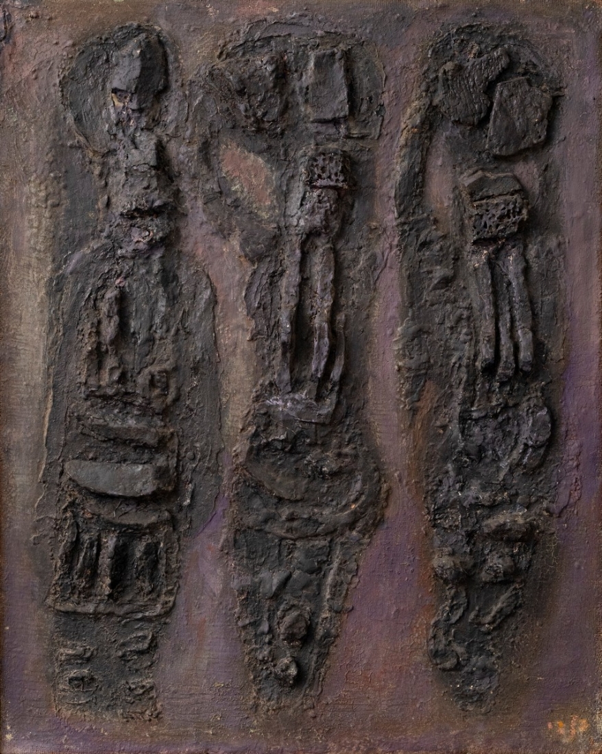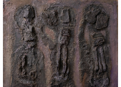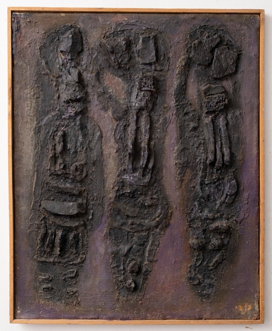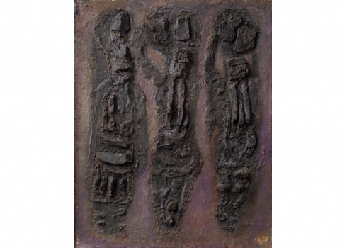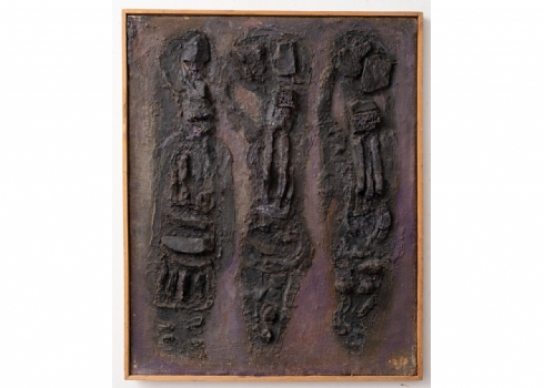 ישראל פלדי (1892-1979) - 'שלוש קריאטדות', טכניקה מעורבת על בד (תבליט)