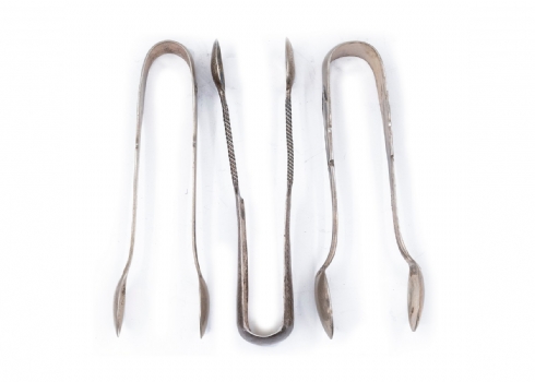 שלושה מלקחיים עתיקים עשויים כסף, חתומים