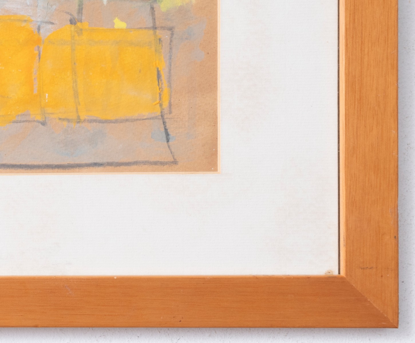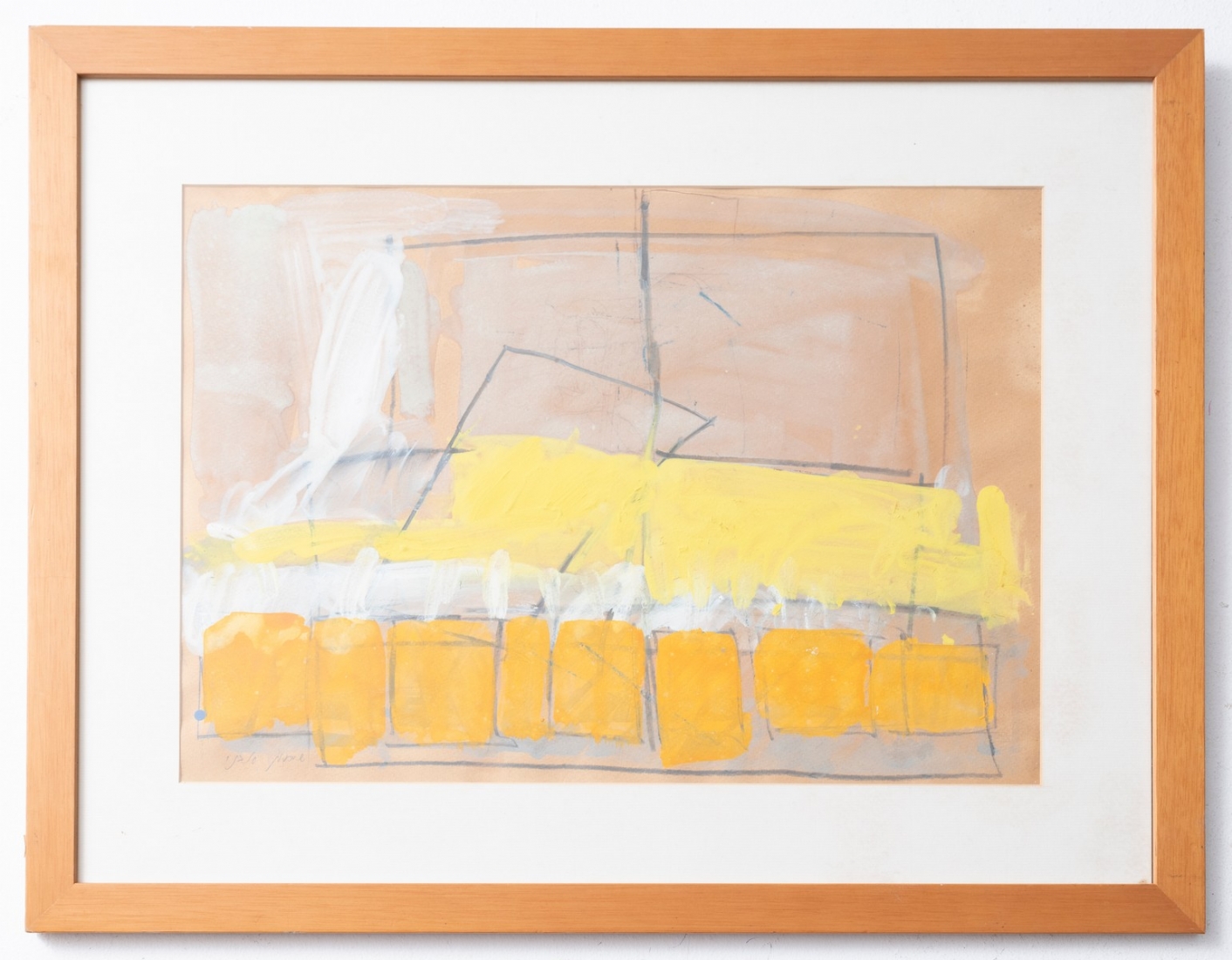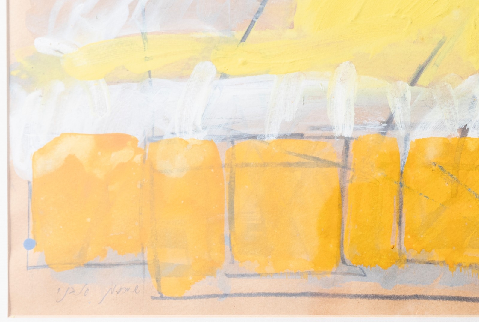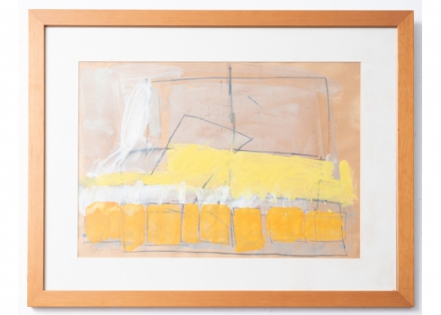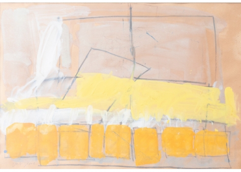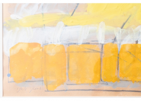 שמעון אבני (נ. 1932) - מופשט בכתום וצהוב, רישום בגואש על נייר, חתום