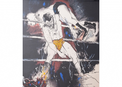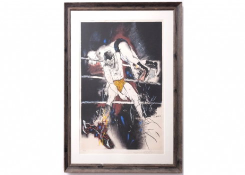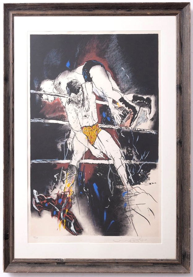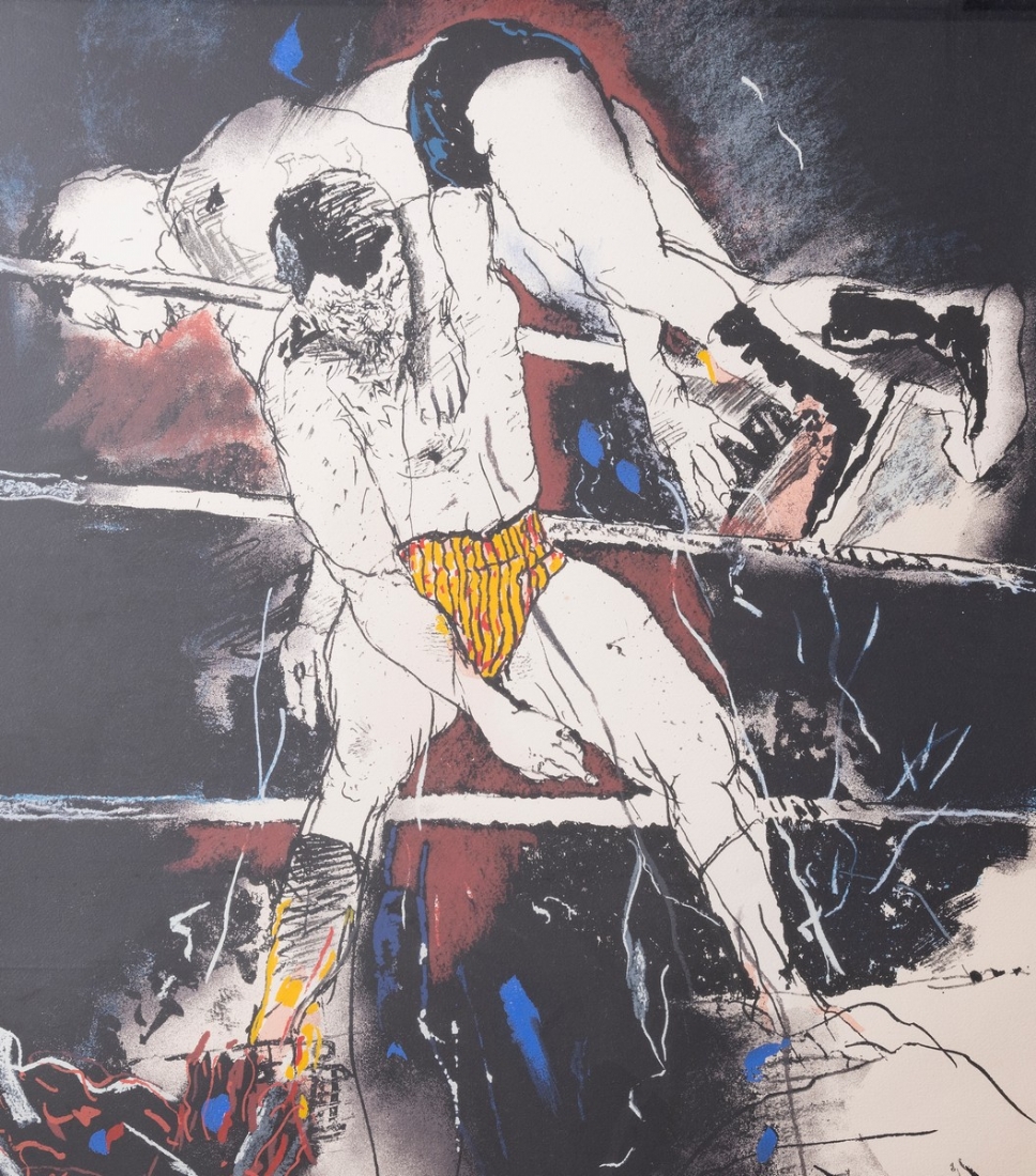 אורי ליפשיץ (1936-2011) - 'מתאגרפים' - ליטוגרפיה גדולה ממוסגרת, חתומה בעיפרון