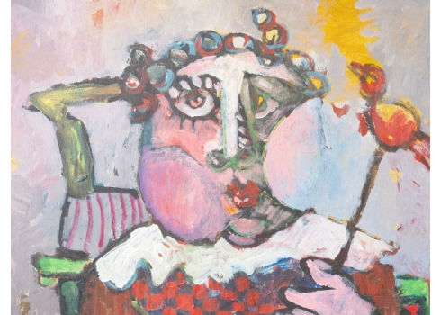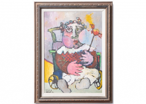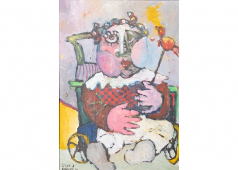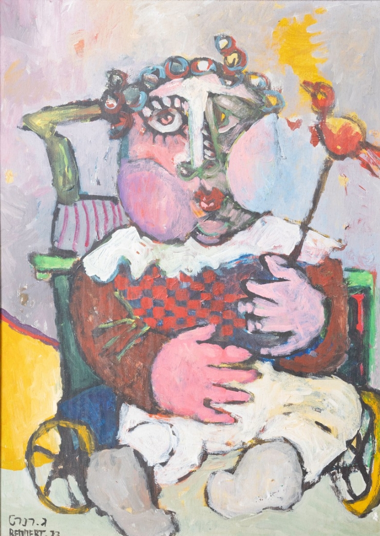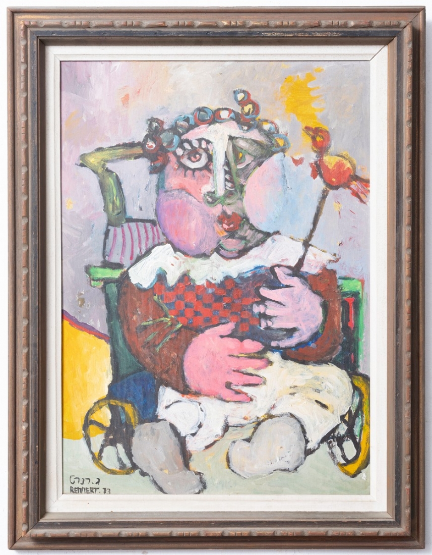 גרשון רנרט (1929-2009 Gershon Rennert)- 'ילדה וסוכריית ציפור' - שמן על לוח, חתום