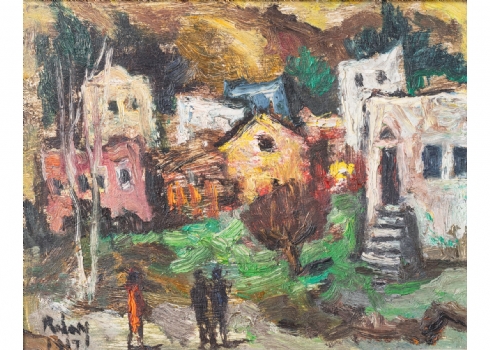 יהודה רודן (1916-1985, Yehuda Istvan Rodan) - ציור שמן על לוח, חתום