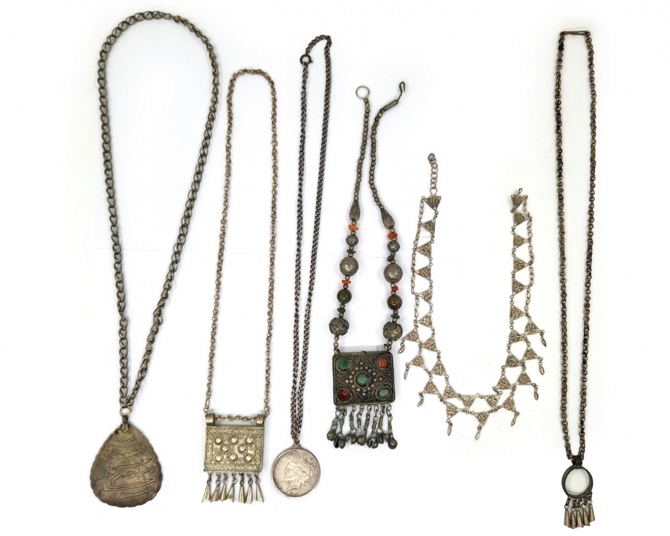 6 תכשיטים אתניים שונים, עשויים 'כסף נמוך' חלקם משובצים