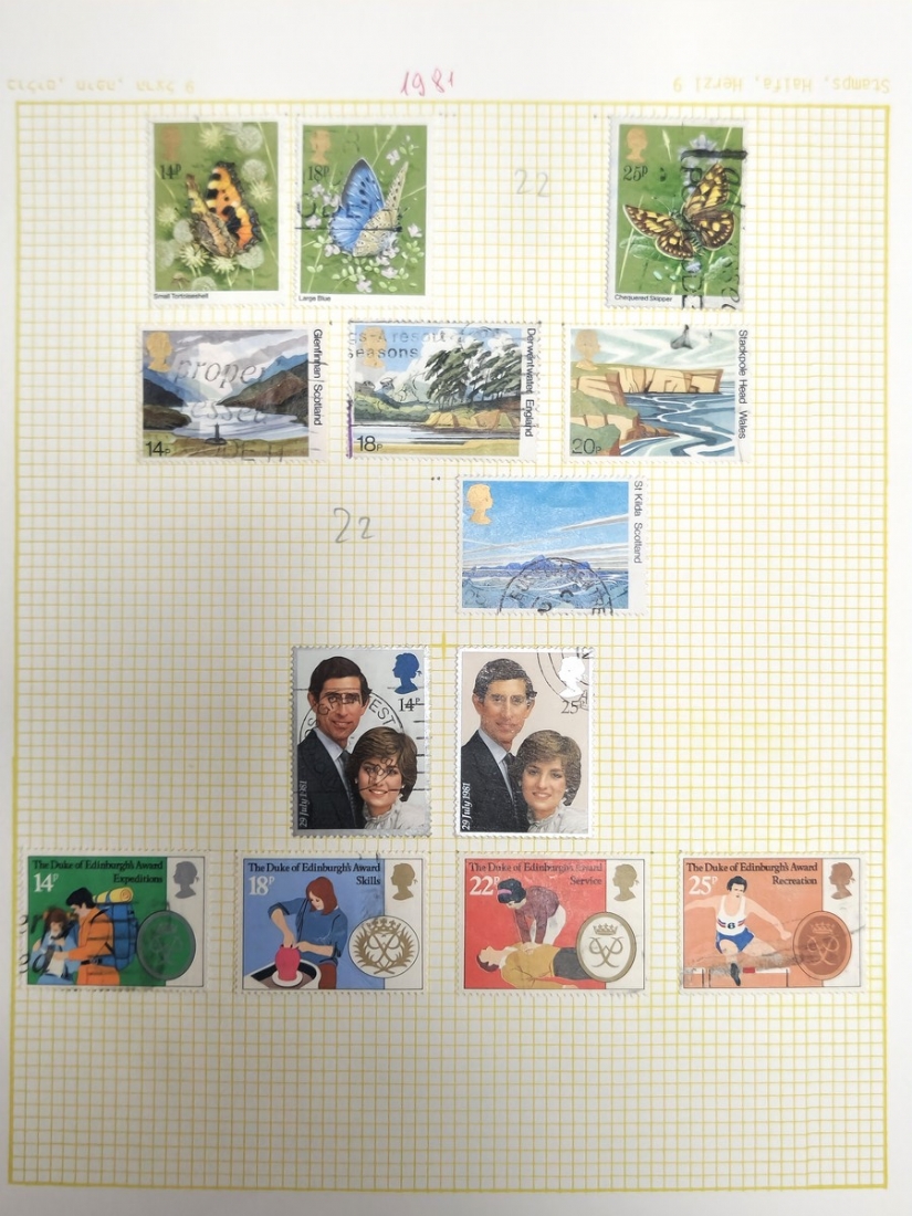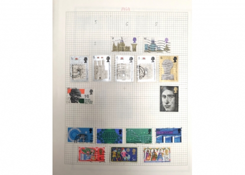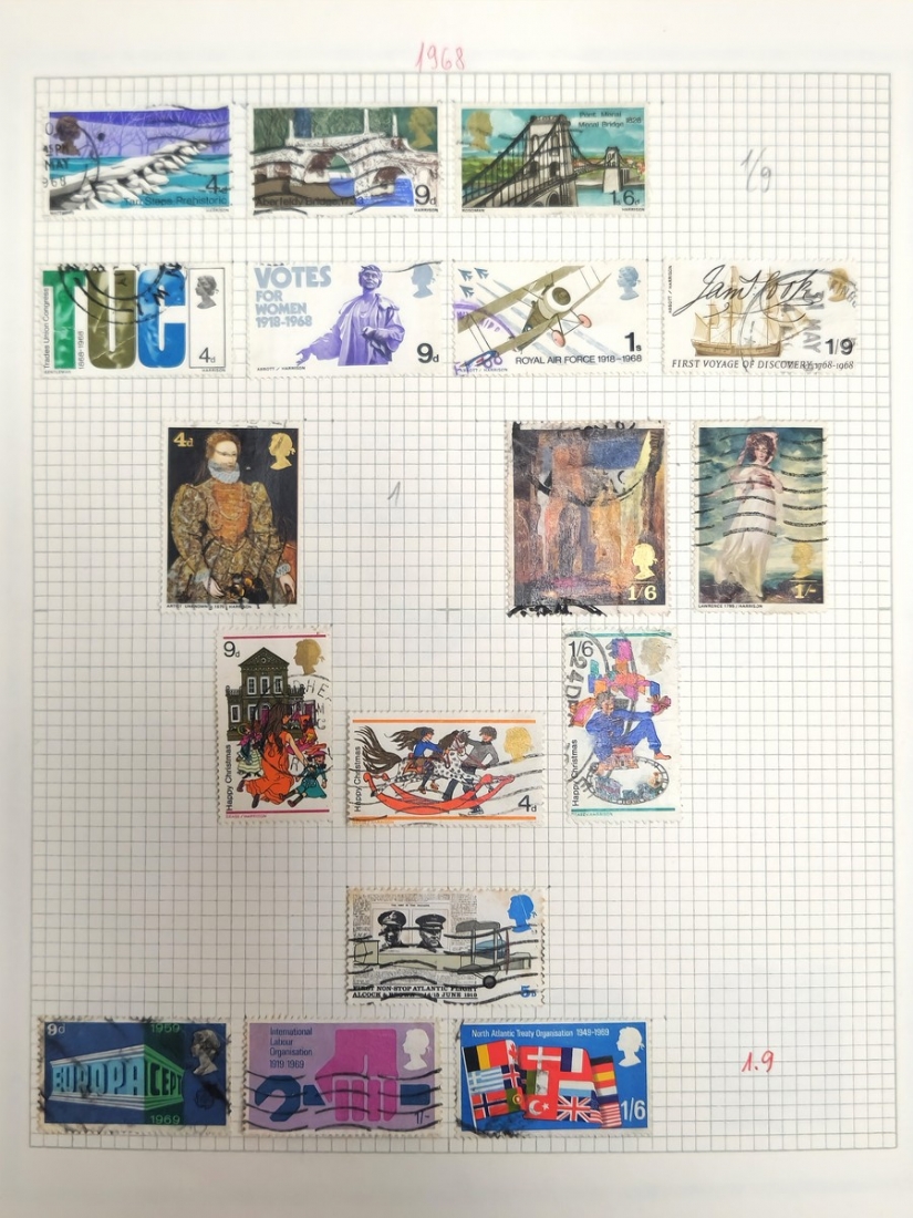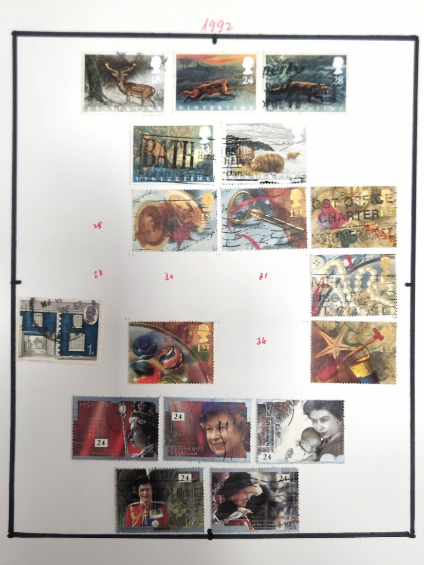 אלבום בולים מסודר על פי קטלוג מיטשל (Michel Catalog Stamp), לפי שנים וסדרות
