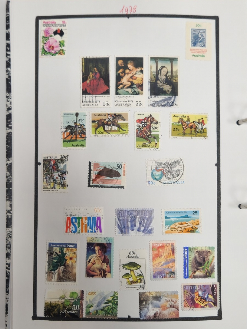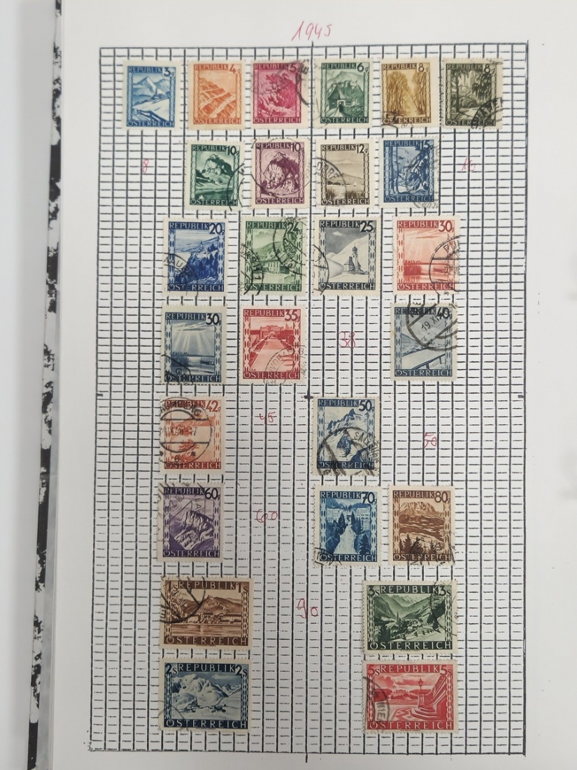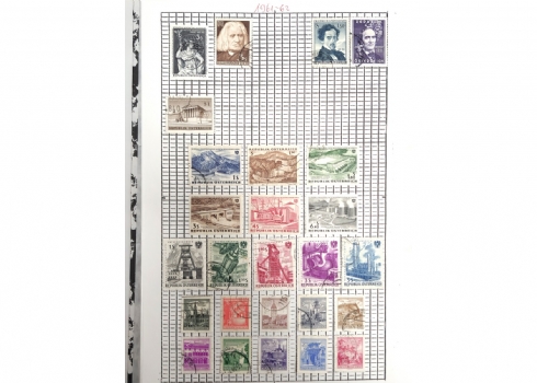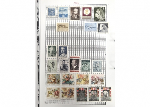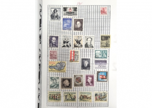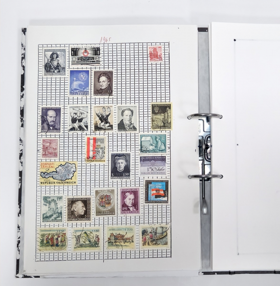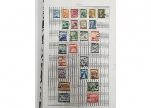 אלבום בולים מסודר על פי קטלוג מיטשל (Michel Catalog Stamp), לפי שנים וסדרות