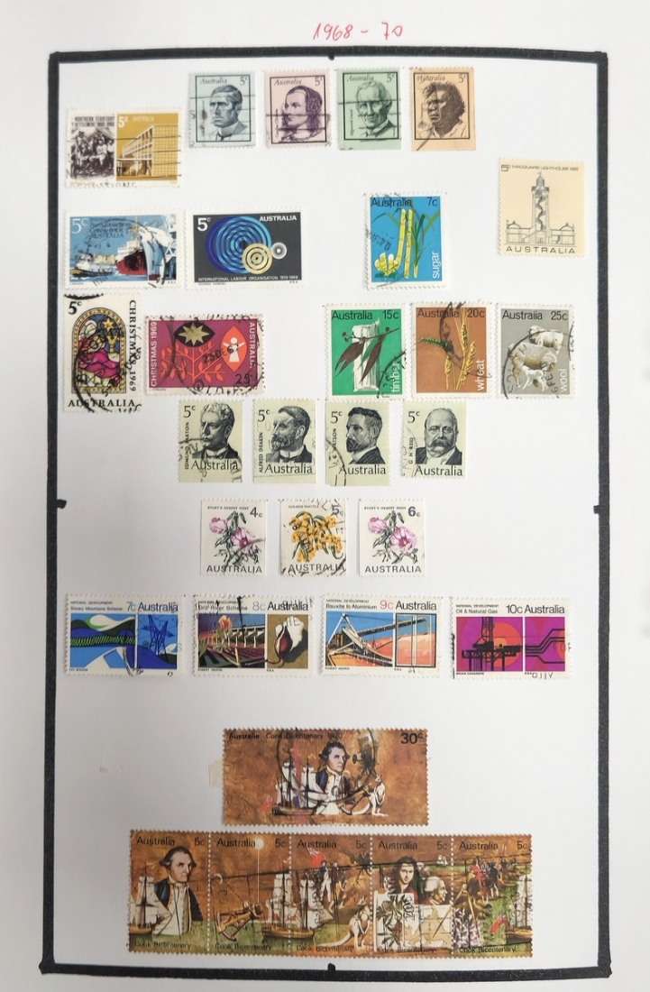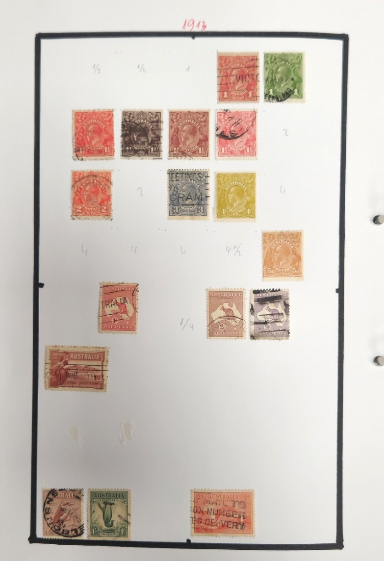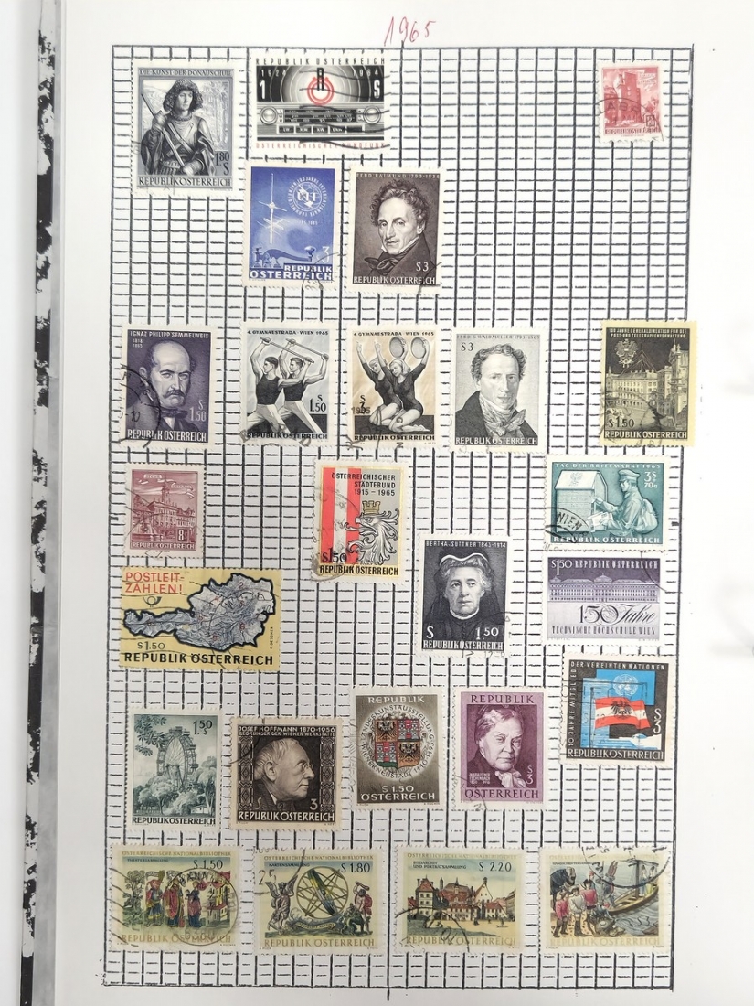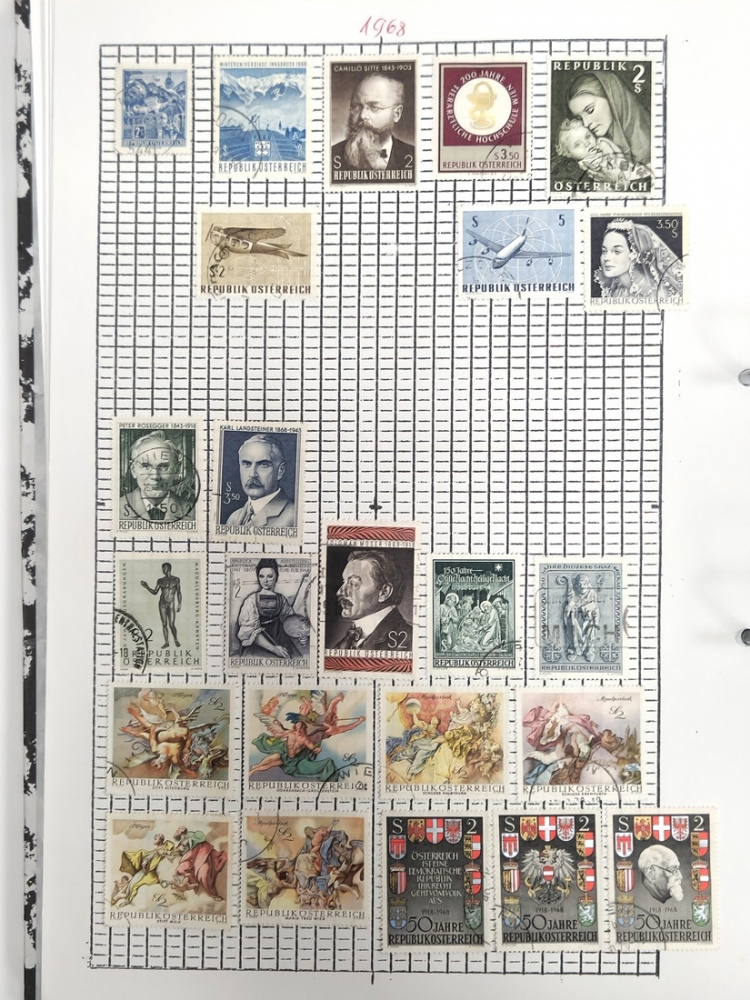 אלבום בולים מסודר על פי קטלוג מיטשל (Michel Catalog Stamp), לפי שנים וסדרות