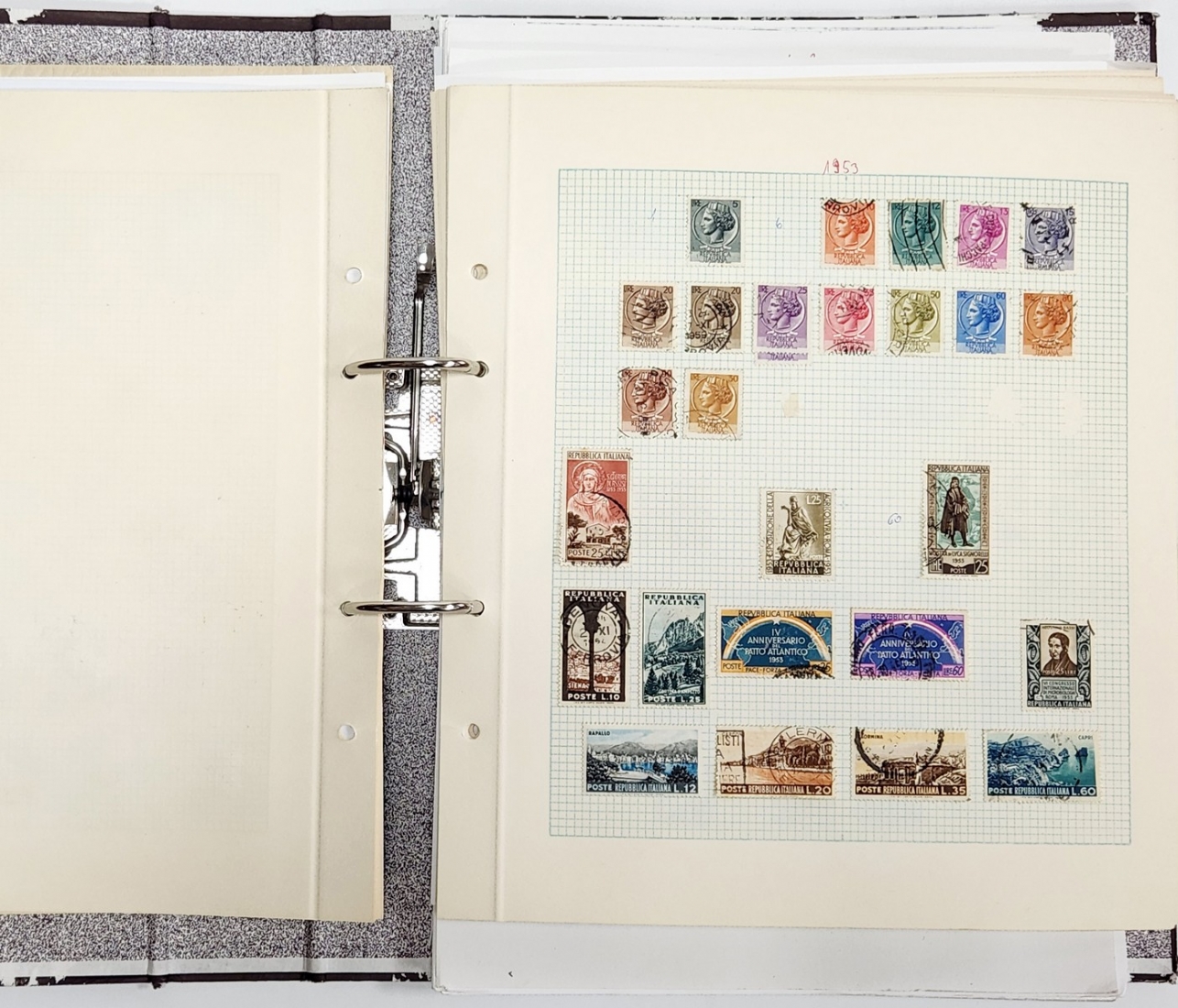 אלבום בולים מסודר על פי קטלוג מיטשל (Michel Catalog Stamp), לפי שנים וסדרותמעל 200 עמודים של בולים תלויים (Stamp hinge)