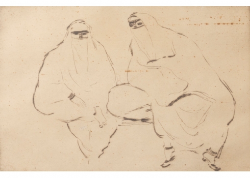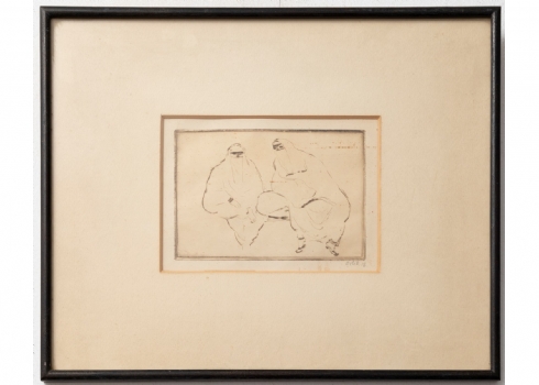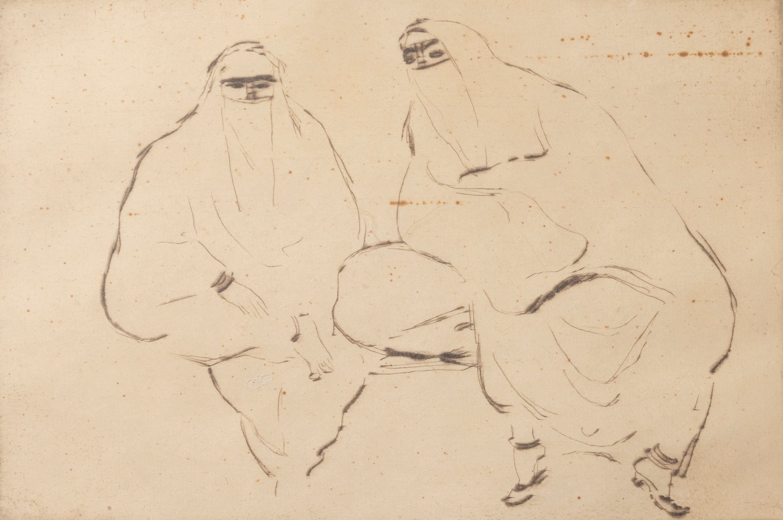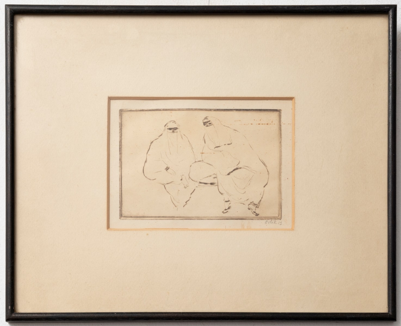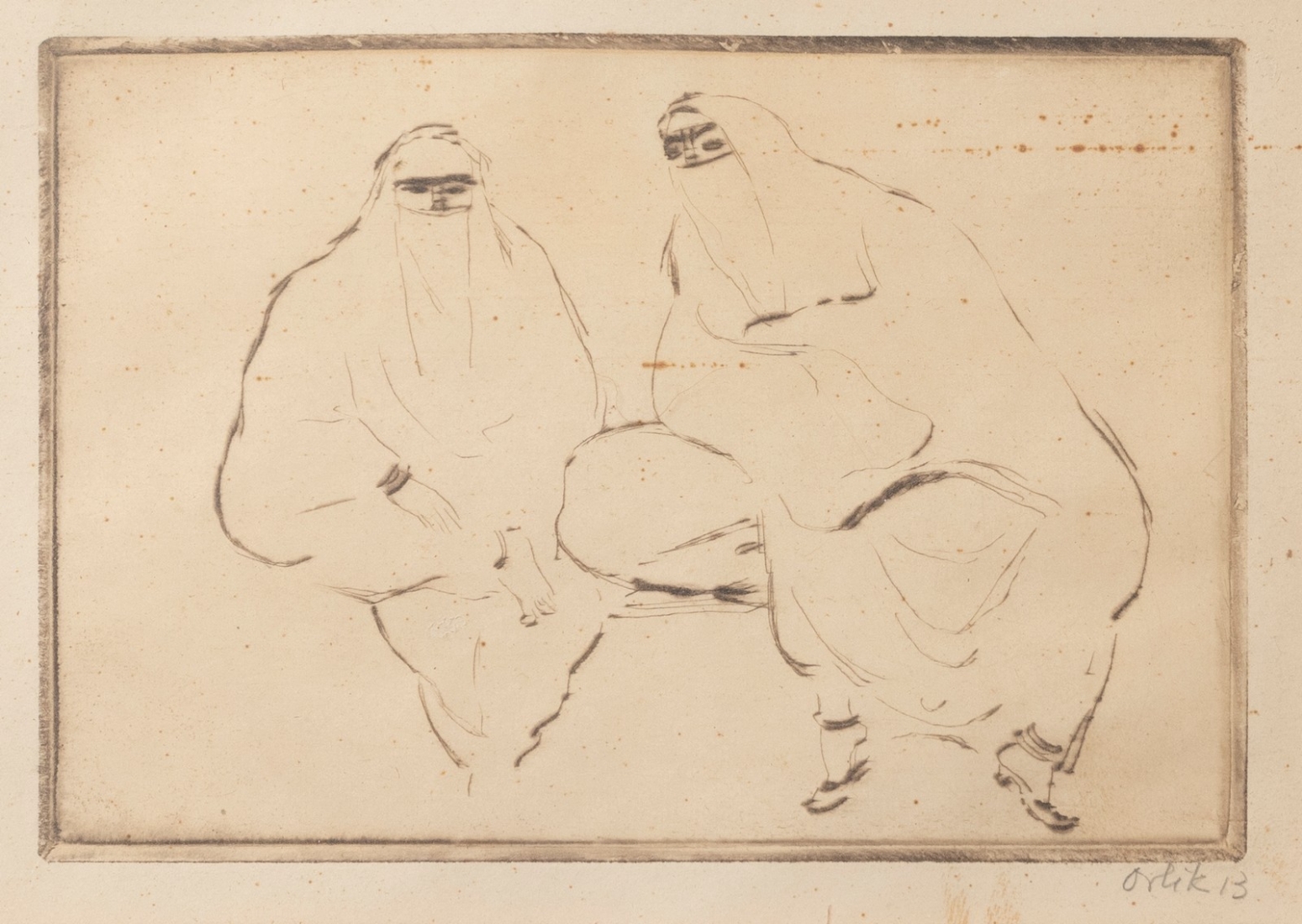 אמיל אורליק (צייר צ'כי Emil Orlík) - 'שתי נשים מצריות' - תחריט חתום בעיפרון