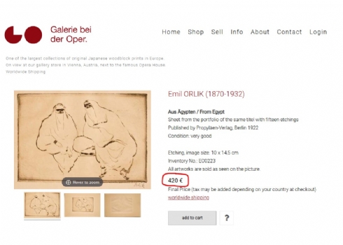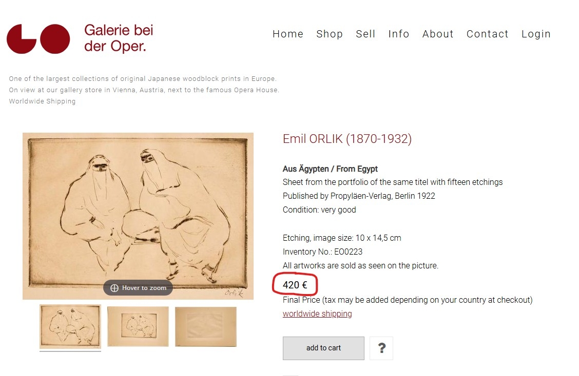 (* מצורף להמחשה צילום מסך של תחריט זהה מגלריה בחו"ל ומחירו)