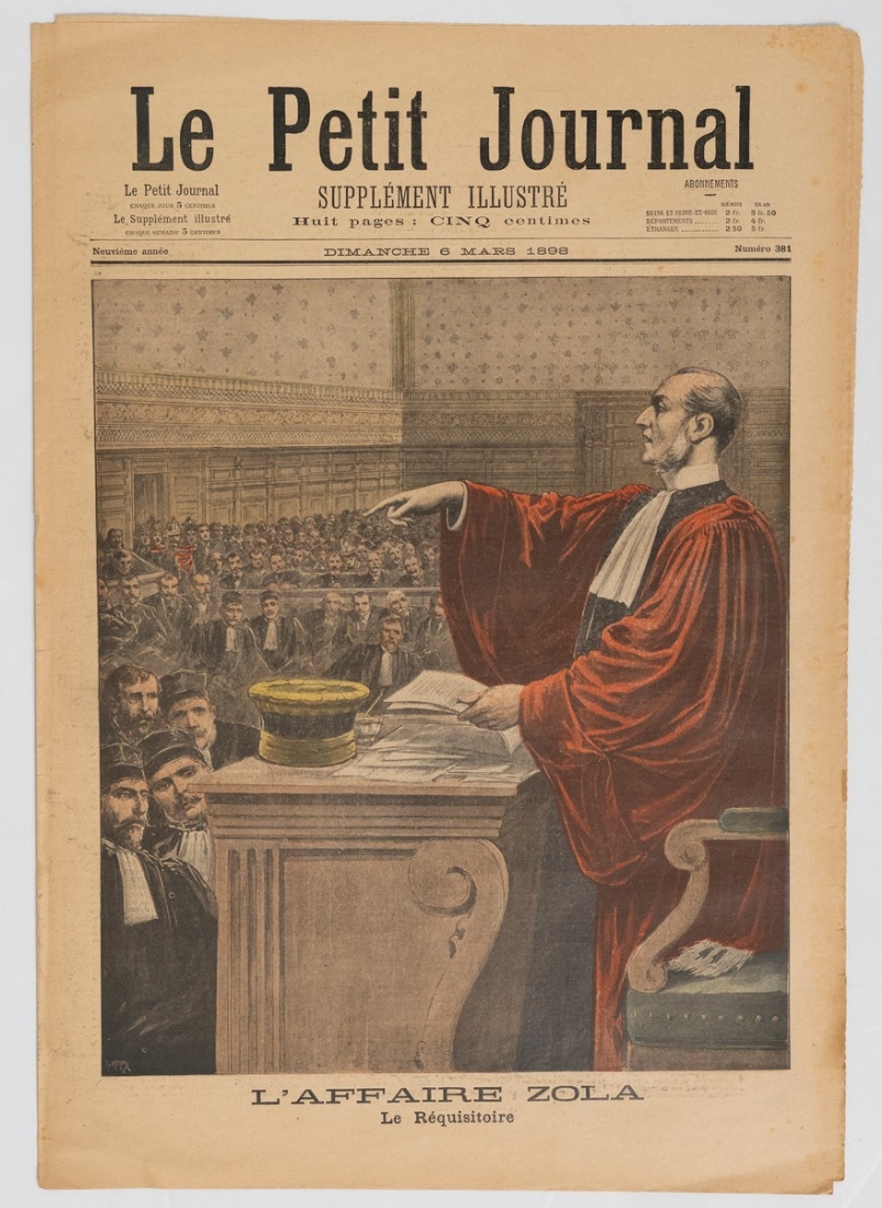 עיתון צרפתי בשם Le Petit Journal ,גיליון מ-1898 מתאר את משפטו של אמיל זולא