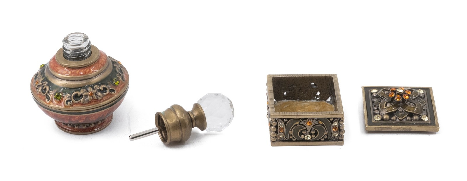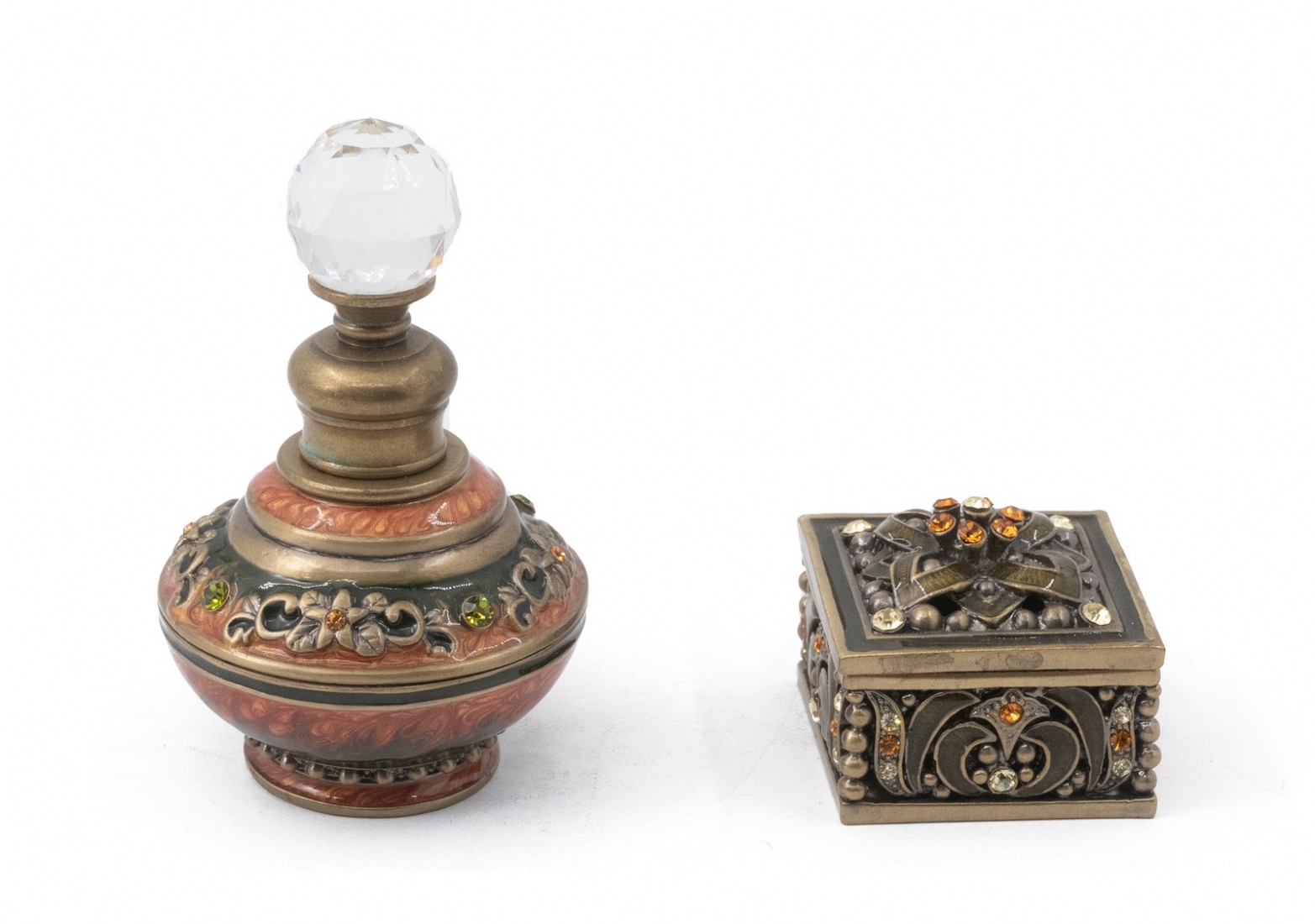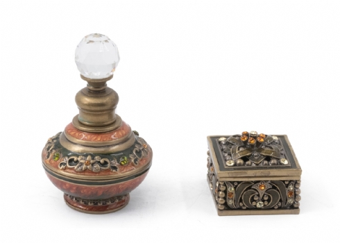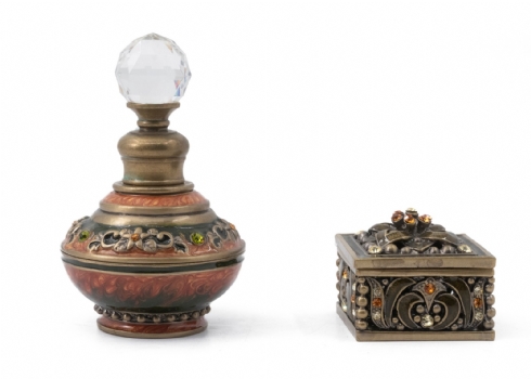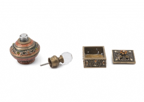 שני חפצי נוי מיניאטוריים עשויים מתכת ומעוטרים אמייל