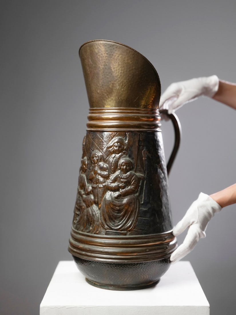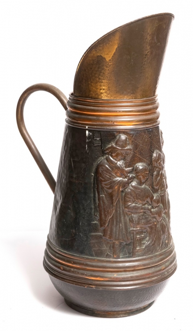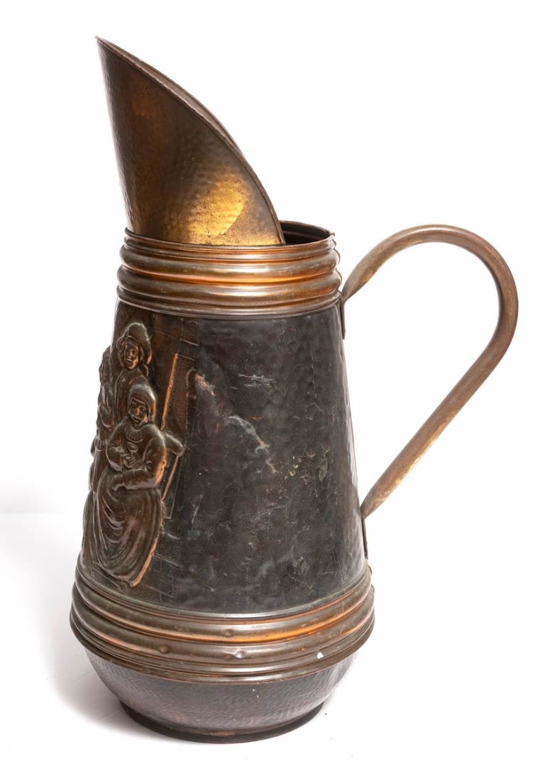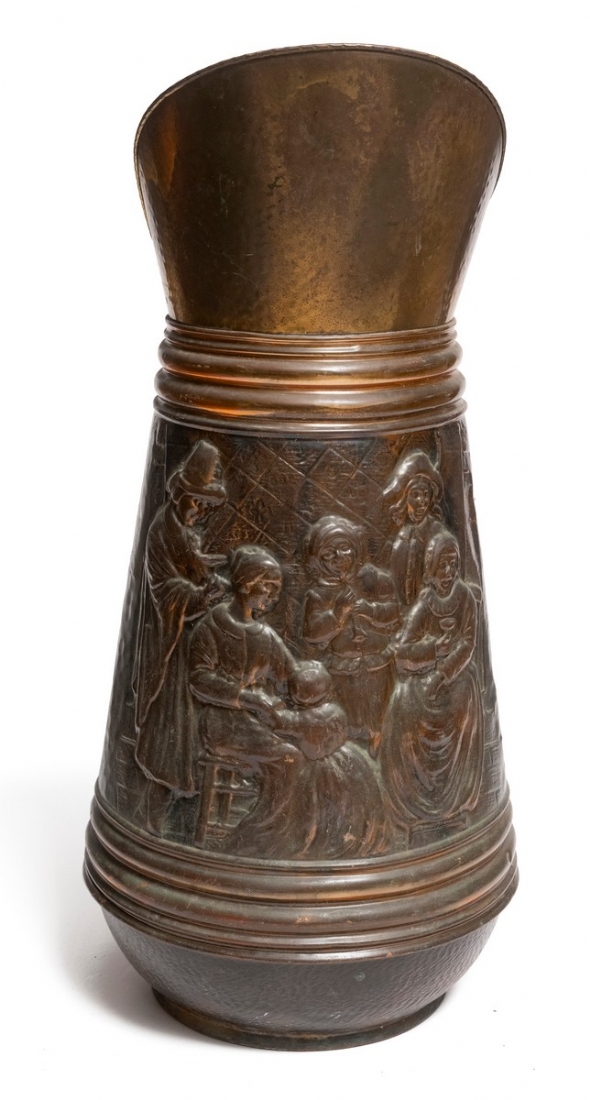 מעמד רצפה עתיק למטריות עשוי נחושת מעוצב בצורת קנקן גדול