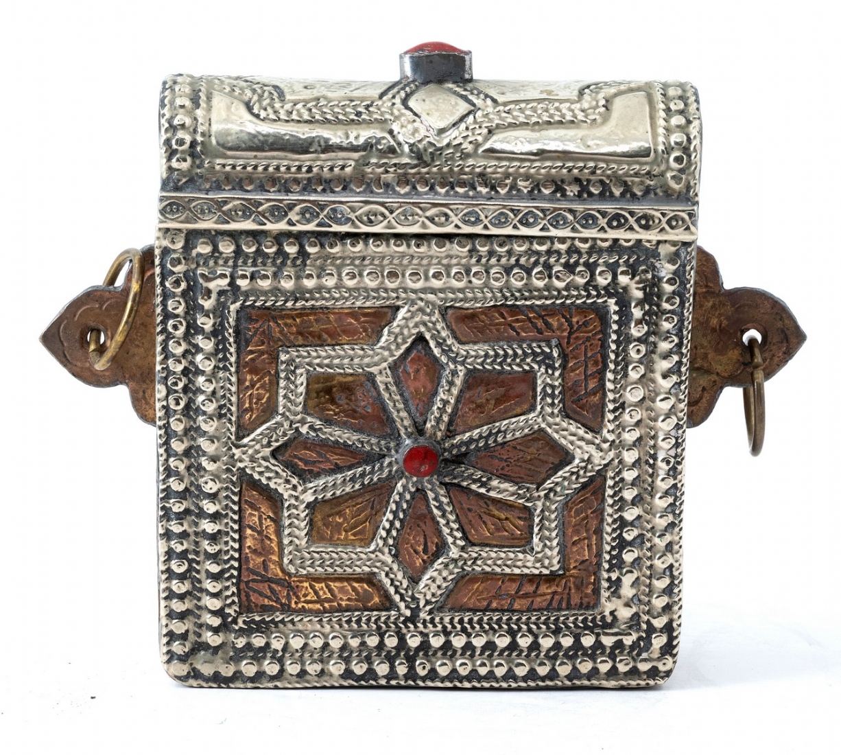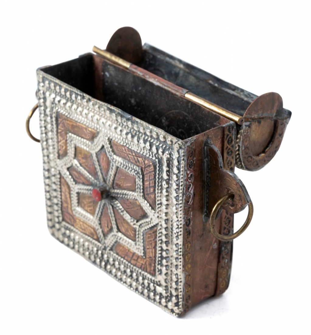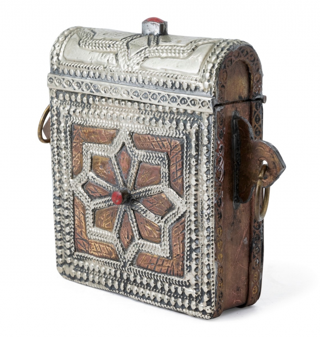 נרתיק מרוקאי לספר קוראן (או מיכל טקסי לאבק שריפה) עשוי נחושת ונחושת מצופה כסף