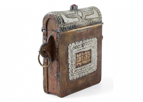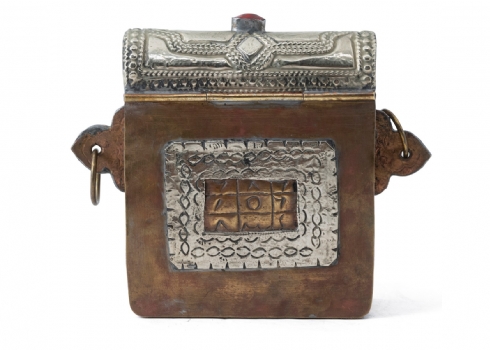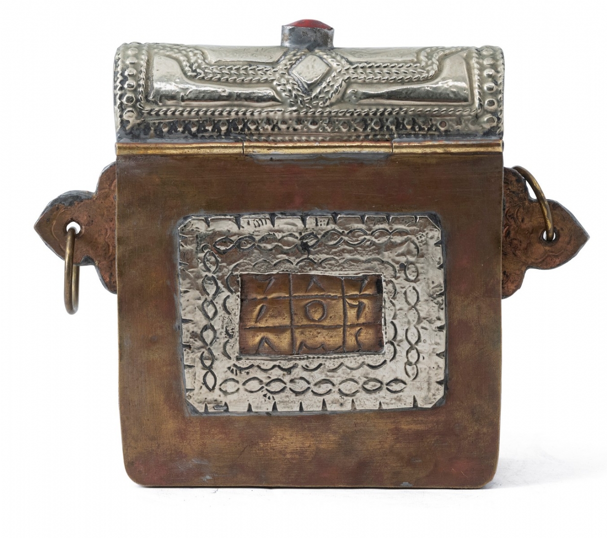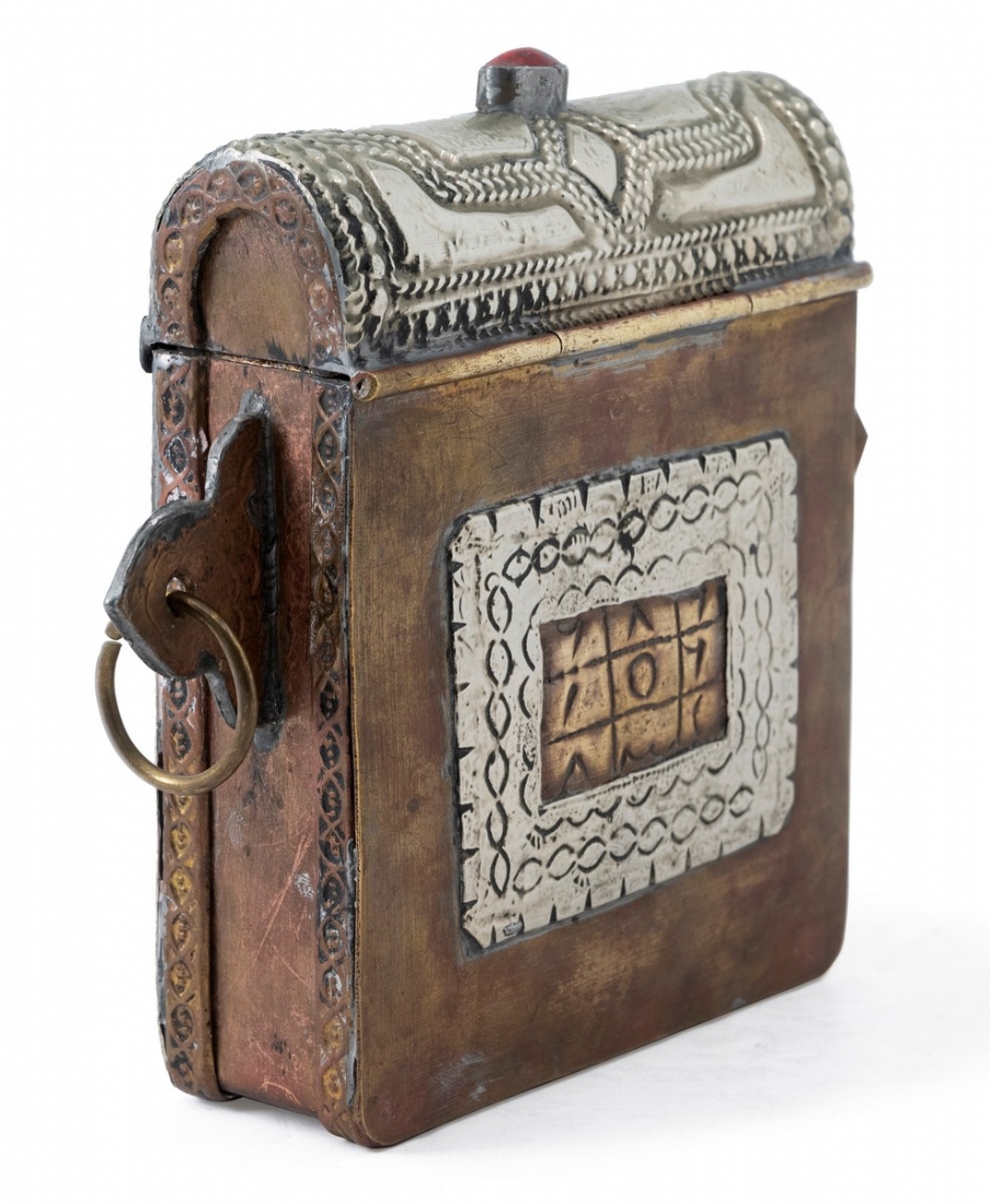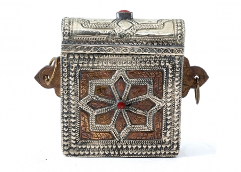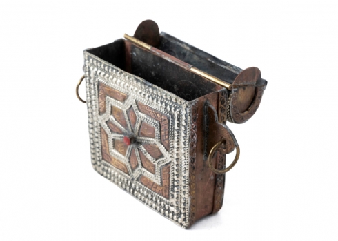 נרתיק מרוקאי לספר קוראן (או מיכל טקסי לאבק שריפה) עשוי נחושת ונחושת מצופה כסף
