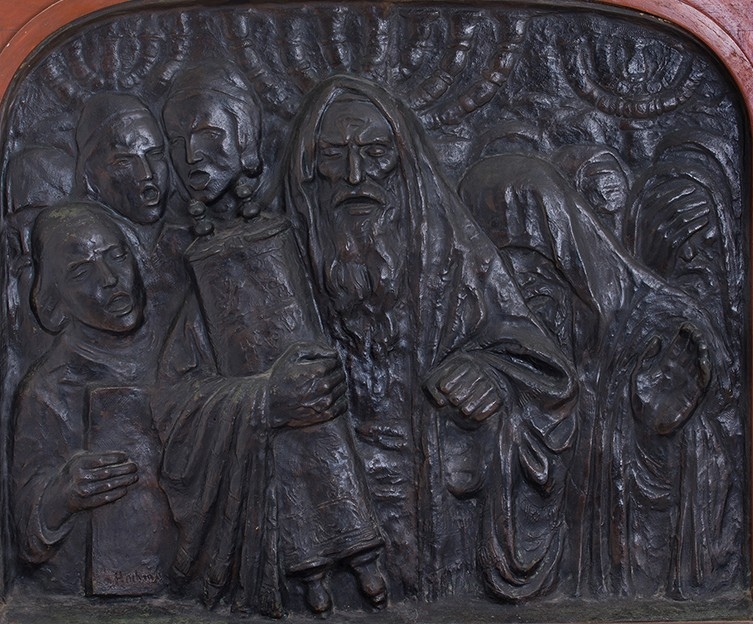 מצורף להמחשה צילום של יצירה גדולה מאת הנריק הוכמן - 'קבלת היהודים לפולין בימי הביניים', כפי הנראה משנת 1907. התבליט קיר הותקן בשנת 1996, בית עיריית קז'ימייז' (Kazimierz) בקרקוב (Krakow)