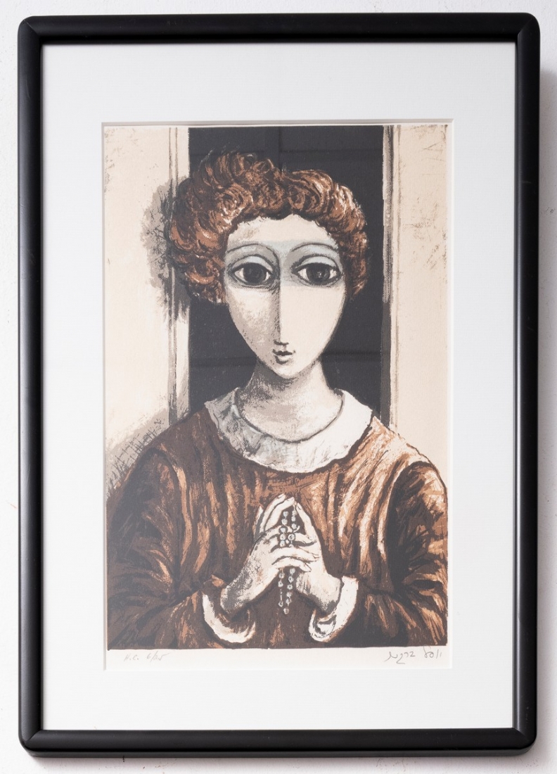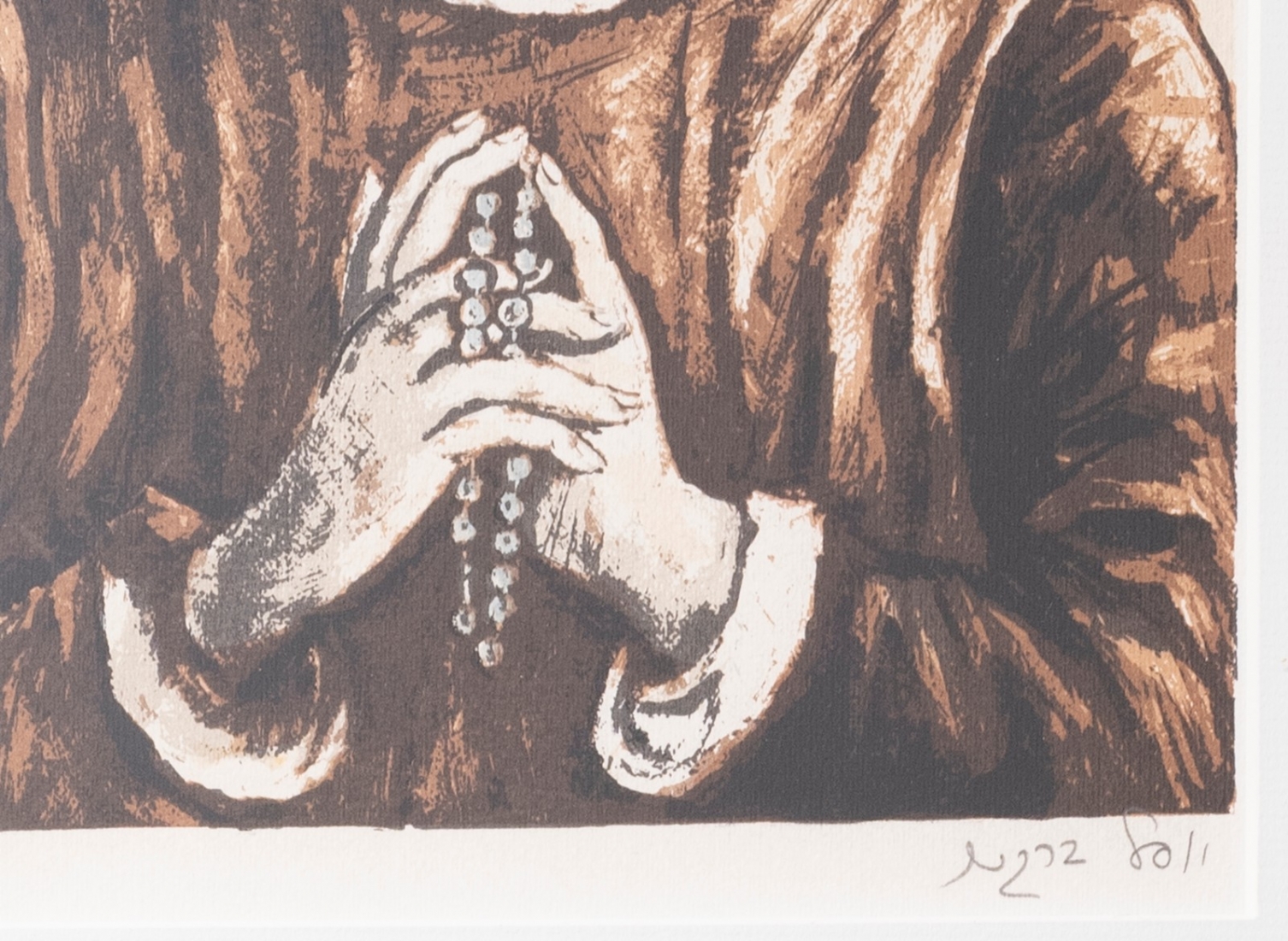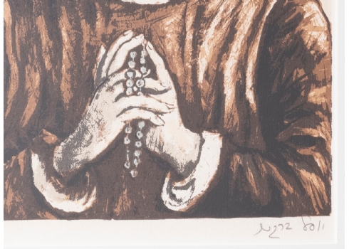 יוסל ברגנר (1920-2017, Yosl Bergner) - 'נערה עם מחרוזת' - ליטוגרפיה