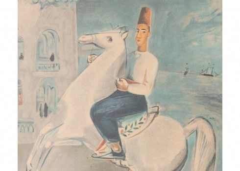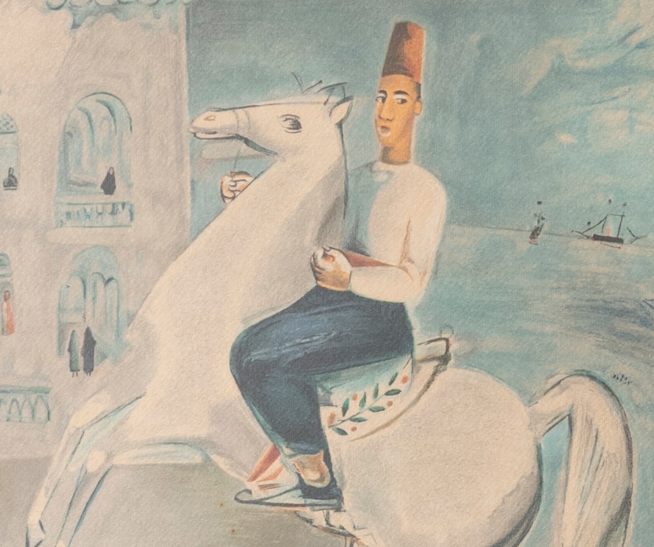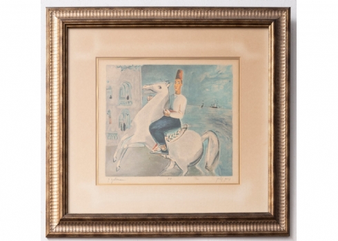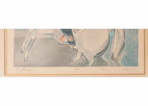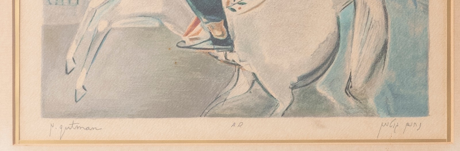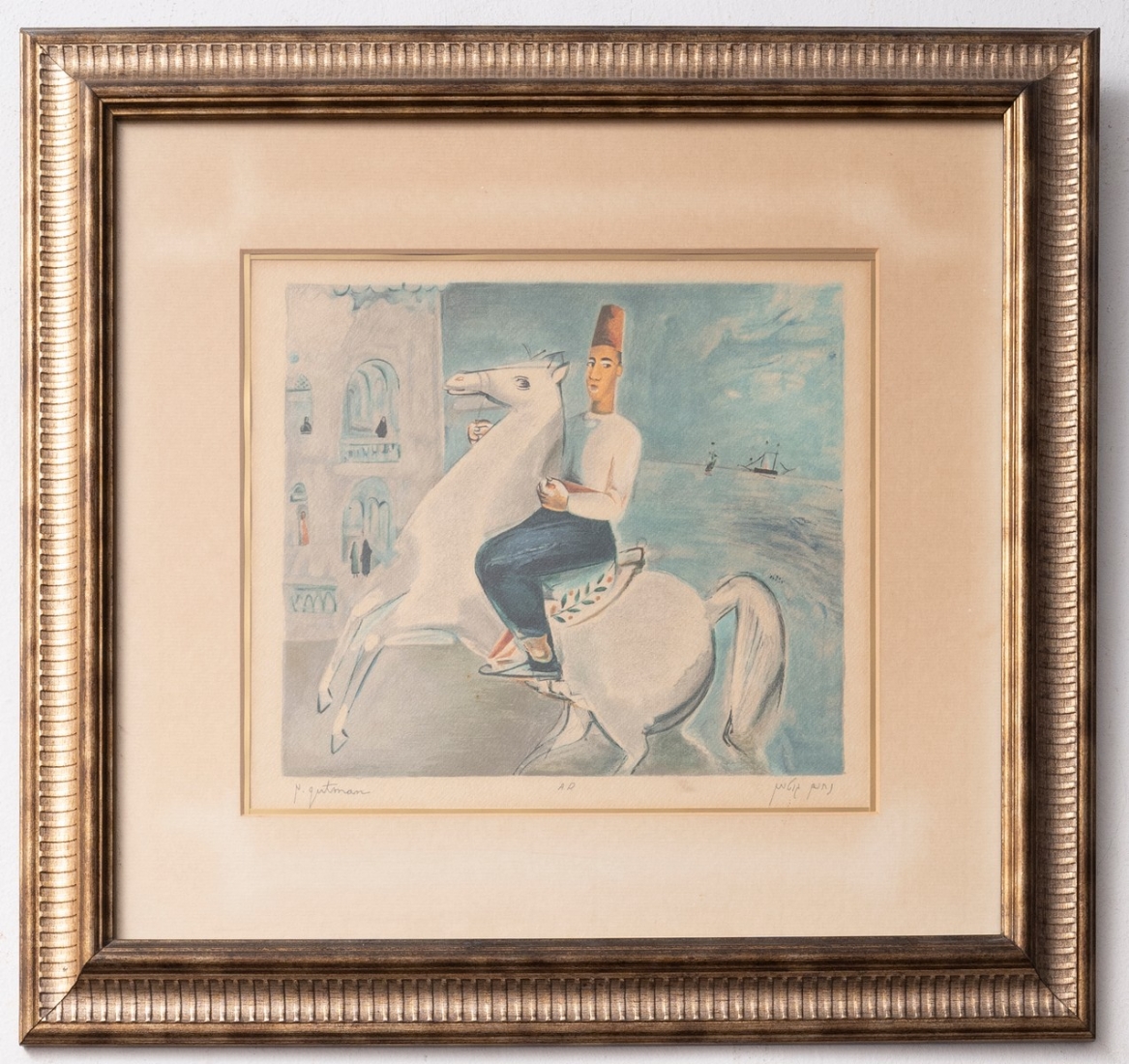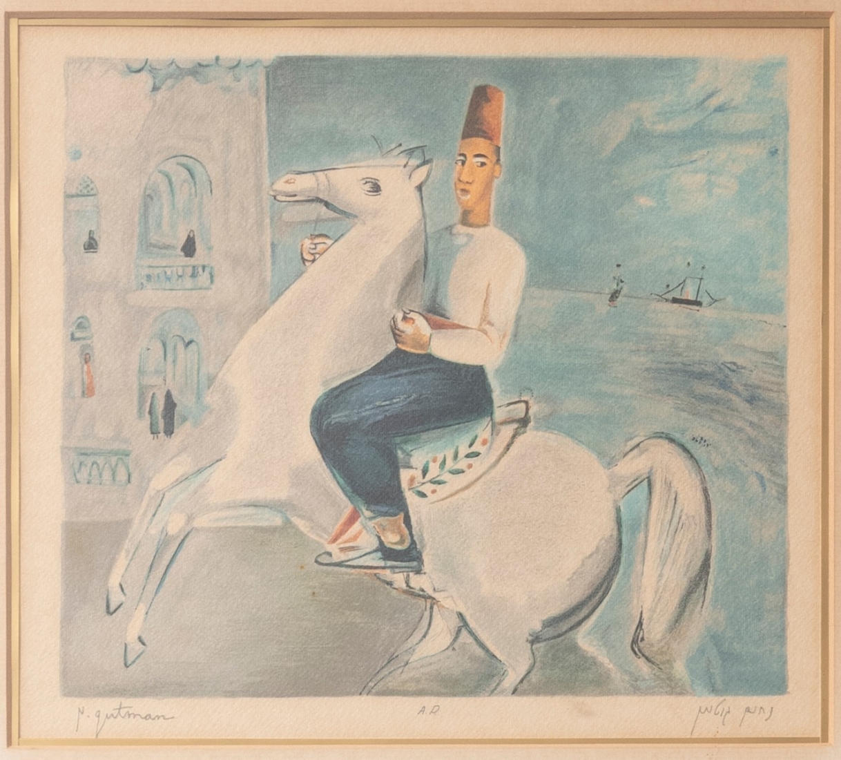 נחום גוטמן- טורקי על סוס לבן, ליטוגרפיה חתומה בפלטה