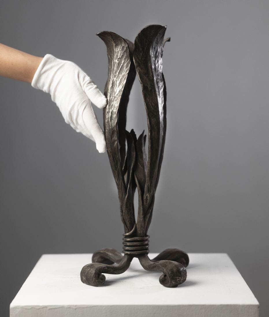 פמוט רצפה צרפתי מסיבי עשוי ברזל בעבודת נפחות ידנית