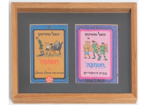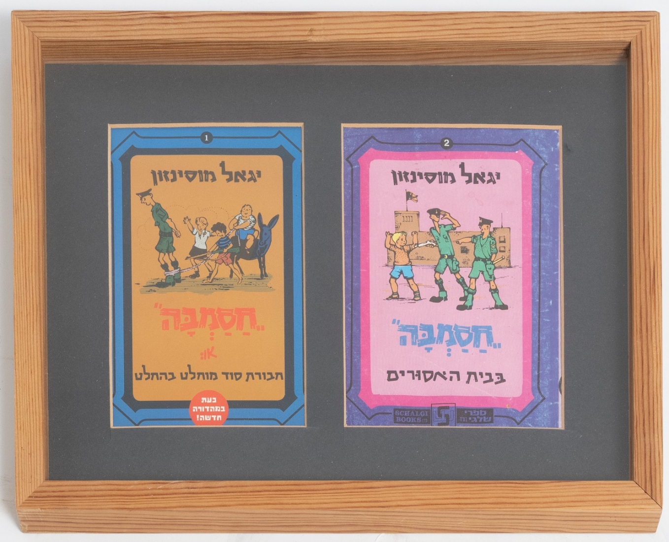 שתי כריכות קדמיות של ספרוני חסמבה ממוסגרים יחד במיסגור תיבה
