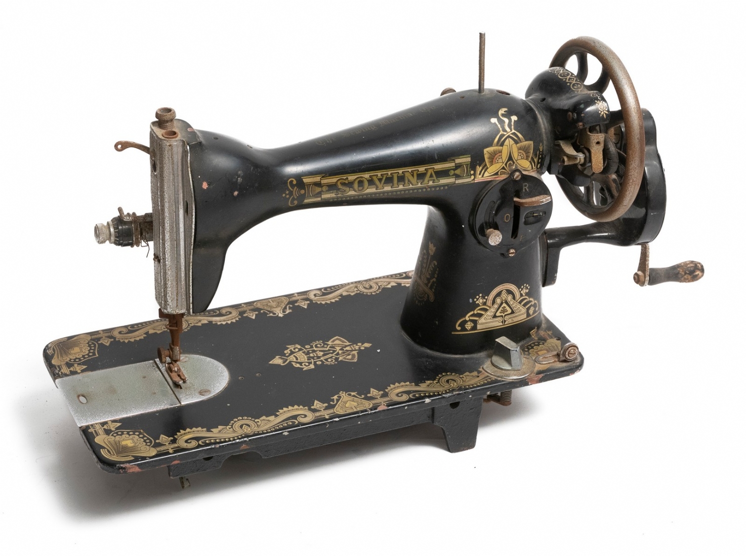 מכונת תפירה עשויה מתכת מעוטרת, לא נבדק מצב עבודה, יתכנו חוסרים